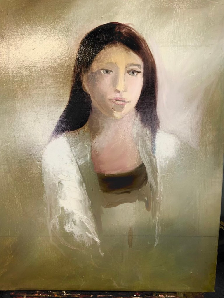 en chemin 120x90 cm huile sur toile j'ai placé un tableau inachevé dans ma dernière exposition dont le titre est "en chemin", d'ailleurs la toile aussi est ainsi nommée. Ce qui me fait rebondir sur l'achevé. L'achevé ne peut être qu'un jugement temporaire en ce qui me concerne. Tant que je suis vivant je peux toujours reprendre une toile que j'ai à un moment ou l'autre désignée comme achevée voire même inachevée et inverser les mots comme les usages. la croyance car s'en est une logée profond qu'une toile sera par définition achevée définitivement quand je le serai également n'est pas un manque de confiance en soi, mais plutôt une forme de lucidité parfois insupportable. Il me semble qu'un tableau se nourrit au fur et à mesure du temps du changement de regard, de tout ce qui ne cesse jamais de nous traverser, nous entretenons bien plus qu'une surface une épaisseur une croyance ainsi. A même niveau que l'espoir sans les inconvénients des déceptions, c'est vivre avec ce qui nous entoure qu'on le peigne ou pas. Un tableau peut avoir le même sourire que le chat du Cheshire.|couper{180}