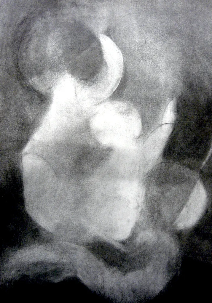 La parole, à force de vivre sur le silence, finit par le faire vaciller : on parle jusqu’à l’épuisement, sans voir que c’est ce silence-là qui tient la flamme, et que chaque mot en grignote le combustible. illustration fusain sur papier pb 2019|couper{180}