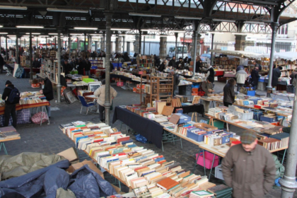 Terminus Bastille. L’escalator est en panne, à sa gauche un escalier de larges marches, 40, peut être 50 et le bruit montant de la ville qui se mêle au milieu, (marches 25, 26, 27)à celui des rames tout au fond des couloirs qui vont et viennent . À droite l’immeuble de la banque de France, sept étages, le dernier, les fenêtres sont plus étroites, ce sont d’anciens logements de bonnes rénovés.Parfois plusieurs chambres réunies en abattant les cloisons pour constituer des appartements. C’est déductible en observant les rideaux. Tout en haut, à l’angle une sorte de petite coupole, on voit bien son revêtement d’ardoises depuis le trottoir d’en face, en se déplaçant, en traversant la rue Saint-Antoine et en levant les yeux. Deux fenêtres de formes rondes légèrement ovales, type œil de bœuf. Surface noire des vitres, pas de rideau. L’immeuble est habité à partir du 3eme étage, les étages inférieurs et sans doute les caves, sont dévolus à l’activité administrative et financière de la banque. Il doit exister une entrée réservée pour les employés, invisible de ce point de vue. L’entrée principale au numéro 5 semble réservée elle aux habitants de l’immeuble. Retour vers cette porte, massive avec des barreaux et des vitres. En s’ approchant plus près on peut distinguer un hall avec des vitres de chaque côtés et un peu plus loin le bas de l’escalier. Un tapis rouge au milieu des marches dont le tissu est tendu par des tringles métalliques dont on aperçoit les embouts dorés. À droite de la banque un bar tabac, la terrasse est sortie, il est 14h la plupart des clients en sont au café, dans de petites tasses marron dont le rebord est d’un blanc cassé. Si on entre le bruit du flipper nous happe ainsi que l’entre choque ment de la vaisselle qu’on est en train de débarrasser et de laver. Quelques couples assis à des tables, de format carré avec un unique pied central, au sol du carrelage, constitué de larges pièces de couleur beige, les joints sont noirs. Des miroirs sur les murs de tailles identiques créent une profondeur supplémentaire et on a la sensation que les silhouettes s’en trouvent démultipliées. Un homme seul dans l’angle au bout de la salle, costume cravate attaché case, lunettes sur le nez en train de consulter un dossier. Le prix du paquet de lucky à augmenté. Un briquet rouge se dépose près des Lucky strike, un briquet qu’on peut trouver facilement quand on le cherche. En ressortant le regard hésite entre la devanture d’un kiosque à journaux dont plusieurs publient en première page le portrait en noir et blanc de François Mitterand, et au dessus du toit du kiosque le petit génie doré au bout de la colonne Bastille. Retour sur l’immeuble de la banque de France. Des années plus tard un artiste, Piotr Pavlenski mettra le feu à l’une des annexes de la banque dans la capitale. Retour sur l’observation du génie de la liberté, il a l’air joyeux, une jambe un peu envoyée en arrière comme s’il volait, mais la fixation à la colonne plus bas crée quelque chose de bizarre, un empêchement. Encore plus loin on devine les cinémas qui seront remplacés par l’opéra Bastille. À gauche le boulevard Beaumarchais, quelques centaines de mètres et le magasin Paul Beusher, à gauche les pianos, on les aperçoit derrière les vitrines par de la le reflets des platanes, un Boesendorfer, plus loin un Steinway, et des marques moins prestigieuses dans le fond du magasin, déjà des synthétiseurs plus fins montés sur des pieds en metal, sombres, contraste ça et la entre le blanc des touches de clavier blanches et noires. Au milieu, comme protégé par les deux autres devantures le magasin de partitions avec en devanture les hits du moment, Michael JACKSON et Led Zeppelin et d’autres encore, méthode facile pour apprendre le piano, la guitare, le trombone…un Georges Brassens pour les paroles et accords, Yves Duteil et son petit pont de bois, et au delà on peut si on le veut apercevoir des chalands qui fouillent dans des boites, des employés qui voltigent et en surimpression la carotte d’un tabac de l’autre côté du boulevard, et des feuillages de platanes, des traces éphémères de couleurs mobiles celles de véhicules de diverses couleurs qui passent s’ajoutent encore au tableau, le troisième magasin et ses guitares, Fender, Epiphone Gibson, Tony Bacon, Chauvel, Kramer et celles que le magasin vend sous sa propre griffe, des guitares classiques d’étude principalement. Plus loin on pourrait encore pousser jusqu’à l’enseigne Prophot, sa vitrine et tous les appareils neufs et d’occasion, mise à l’honneur du Mamya 6×6 notamment, puis le regard dérive vers un vieux modèle de Leica, pas encore numérique, mais déjà tellement coûteux sans optique. La série classique des NIKON et des Canon, qui se tirent la bourre en déployants à leurs côtés des kyrielles de focales, avec leurs petites étiquettes discrètes indiquant l’ouverture et le prix en tout petit. On traverse le boulevard Richard le noir en passant par la rue des Filles du Calvaire. En poussant un peu plus encore on se trouve dans la rue de la roquette, encore dans son jus avant l’arrivée des sauterelles qui dévoreront tout de ce que le quartier a connu de populaire. Déjà les artisans ont cédé leurs locaux pour qu’on y crée des lofts, les premiers bobos vautrés dans leur arrogance aux terrasses, une pâtisserie marocaine, on peut entrer pour acheter quelques gâteaux sucrées loukoum makroud corne de gazelle, mais on ne s’assoie pas, trop de monde à siroter le thé dans de petits verres décorés de fleurs peut être peintes à la main. Retour vers la place en dégustant un makroud. Sur la gauche deux grandes terrasses et le cirque des clients assis, lunettes de soleil, premiers téléphones sans fil. Énormes, coûteux mais si classe. Cet obsession d’un grand nombre d’avoir l