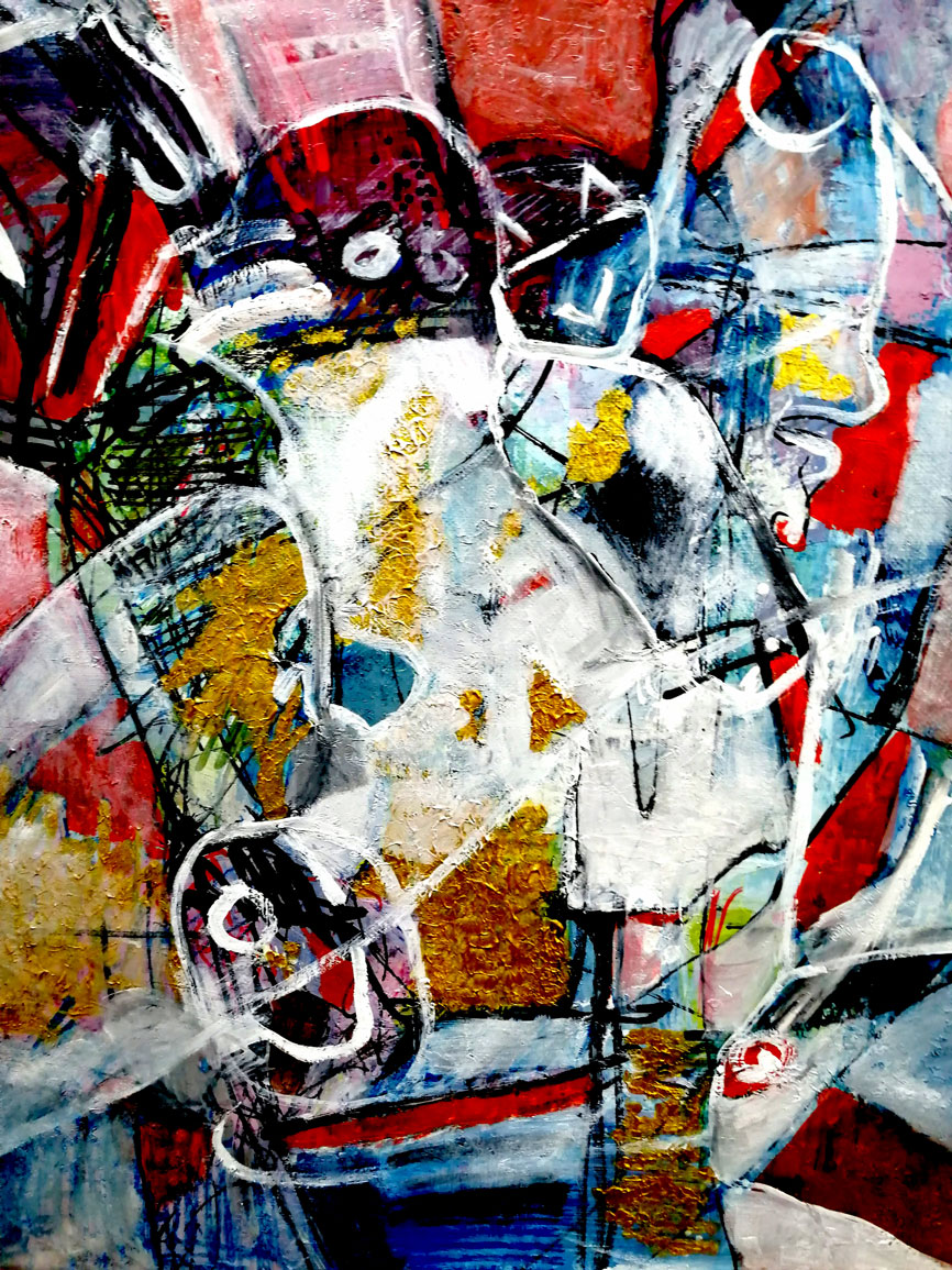 Si l’art doit devenir une priorité, il faut accepter un manque. La pauvreté, au sens le plus simple, y oblige : elle coupe les distractions, elle met l’essentiel à nu. C’est une ascèse souvent involontaire, mais elle a cet effet-là. Beaucoup d’artistes vendent peu non par posture, mais parce que ce qu’ils font ne se laisse pas avaler tout de suite ; et ceux qui les suivent vraiment ne sont pas toujours les mieux armés financièrement, plutôt ceux pour qui une œuvre compte plus qu’un confort. Le paradoxe, c’est que l’argent finit quand même par arriver — pas par amour, par faim. L’appât du gain récupère les œuvres, les rend visibles, les met sur la place. C’est sale et utile à la fois. Sale parce que ça domestique, utile parce que ça ouvre des passages. Alors le silence qu’une œuvre porte, ce noyau qui résiste au bruit du monde, circule malgré tout. C’est à ce silence-là que je fais crédit : non pas un apaisement vague, mais une force lente qui ronge l’effroi et l’aveuglement en nous, jusqu’à nous rendre un peu plus vivants. illustration Voyages ancestraux techniques mixtes pb 2019|couper{180}