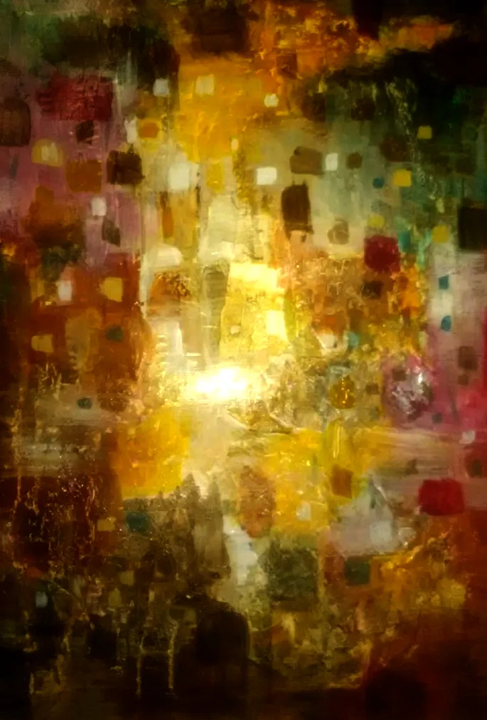 Il avait longtemps tourné autour de ces mots-là : « beau », « déco », comme si la peinture se décidait dans un débat. Puis il avait laissé tomber. Il avait refait le chemin jusqu’au pont : la toile nue, la main d’enfant qui hésite au bord du pinceau. Ce qui le mettait en route, maintenant, ce n’était plus l’idée brillante ni la fulgurance, mais l’écoute. Le cœur qui bat, le sang qui circule, le feulement d’un chat en quête sur le toit voisin, le petit ploc d’une goutte d’eau : ces signes minuscules lui donnaient une direction plus sûre que ses images d’autrefois, celles où il se perdait en croyant avancer. Il sentait qu’il pourrait presque peindre les yeux fermés, non par virtuosité, mais parce que quelque chose en lui avait cessé de forcer. Son œil aussi avait changé : un trait trop fragile, une couleur trop vive le faisait vaciller, alors il allait plus loin dans la concentration, sans juger, et laissait la main faire ce qu’elle savait faire quand elle n’était pas surveillée. Quand il recula enfin de quelques pas, comme il le faisait toujours pour voir, il fut arrêté net. Le tableau tenait. Il était beau au sens le plus simple : comme un olivier bien taillé, traversable, respirant. Un oiseau aurait pu y passer sans se cogner. Il se sentit passeur, c’est-à-dire capable de laisser passer quelque chose sans le déformer. La beauté était là, dans cette fragilité acceptée, dans cette souplesse trouvée pour la laisser sourdre et la partager. Demain, sans doute, il faudrait recommencer. Mais ce jour-là, c’était arrivé. illustration huile sur toile pb 2019|couper{180}