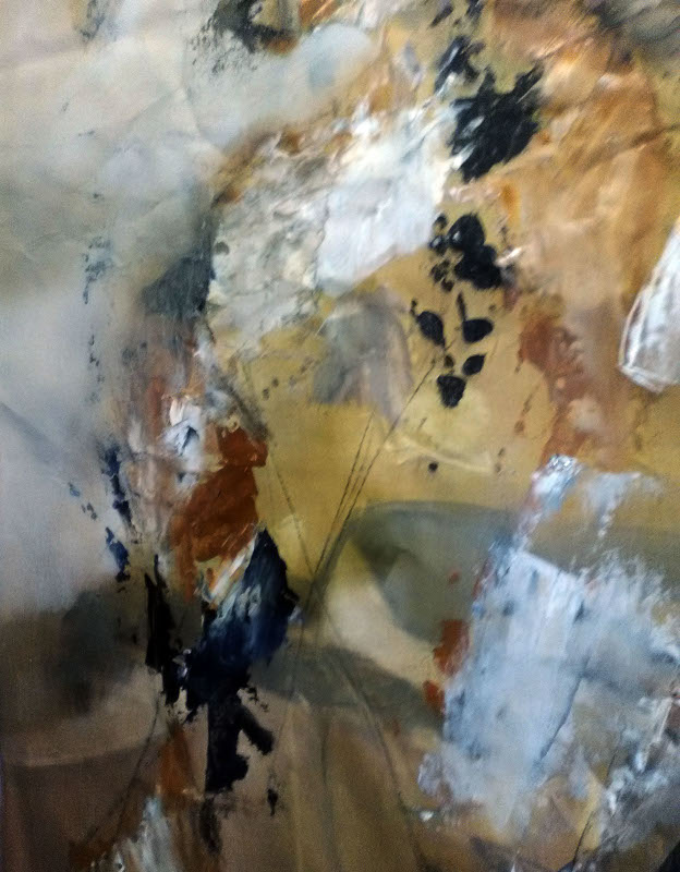 Où les choix mènent-ils vraiment ? Il fit la liste, mentalement, de ceux des dernières semaines — les prix retirés, les expositions réduites, la décision de ne plus vendre — et sentit le chemin dans son corps avant de le comprendre dans sa tête. Il avait quitté des habitudes, coupé des protections, et maintenant la moindre brise le prenait de face. Un oiseau qui chante au loin suffisait à lui faire mal. Il eut cette pensée un peu absurde et exacte : avec une oreille bouchée, au moins la douleur n’entrait que d’un côté. Il s’était tenu comme on tient en apnée, jour après jour, en descendant plus bas que ce qu’il croyait possible. Au fond, très loin, il lui avait semblé voir une forme connue, un bout de paysage intérieur qu’il pensait perdu. Illusion peut-être. Il allait encore douter quand la suffocation vint : le corps rappelait qu’il fallait remonter, respirer autrement, revenir à la surface des choses sans confondre légèreté et mensonge. Il avait eu des haut-le-cœur en pensant à ce qui l’attendait encore, aux engagements pris autrefois comme on jette des bouteilles à la mer et qui reviennent toujours, un matin, sur le seuil. Les projets s’accumulaient derrière lui. Il les sentait revenir, non pas en théorie, mais en poids : dates, rendez-vous, courriers, dettes, attentes des autres. Et pourtant il tenait. Pas par volonté héroïque, plutôt par une poussée sourde qui le gardait debout quand tout le reste cédait. Dans cette douleur, il recommençait à entendre quelque chose de simple : une zone calme, nue, où il respirait mieux. Ce calme n’était pas un trou. Il était une réserve. Il donnait envie de peindre, tout de suite, de saisir une toile, de prendre les pinceaux pour attraper ce que cette réserve ouvrait en lui. Il se méfia une seconde : et si c’était encore une ruse de l’imagination, une façon de se raconter une sortie ? C’est à ce moment que le bourdon entra dans l’atelier. Il le suivit des yeux : l’insecte tournait vite, cognait contre une poutre, contre un mur, repartait, puis venait se fracasser obstinément sur les vitres donnant sur la cour. Il alla ouvrir la porte. Encore deux ou trois chocs, puis le bourdon trouva la brèche et disparut d’un coup dans l’air. Il referma. Quelque chose se mit en place, d’un seul tenant. Il esquissa un sourire, pas joyeux, mais juste. Il remercia en silence ce qui, malgré tout, l’avait maintenu là. Puis il se mit au travail. illustration Décomposition, détail huile sur toile, pb 2019|couper{180}