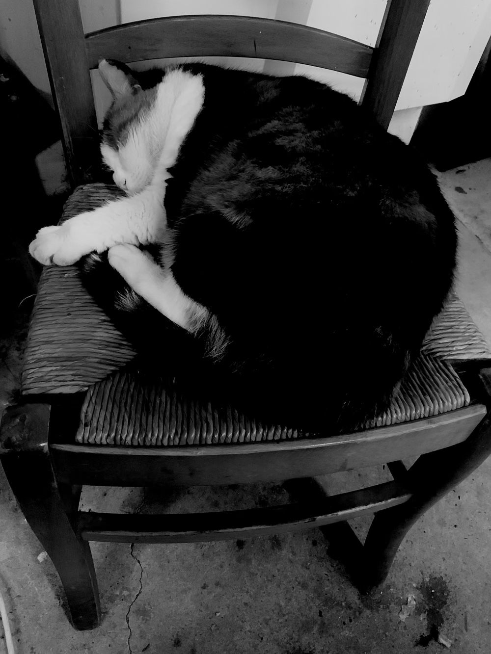 La chatte passe nonchalamment près de l’homme assit sur sa chaise, l’homme absorbé par le travail du jour. Un bond et la voici sur tes genoux et qui ronronne. Tu n’aurais par le cœur de l’ignorer, de la chasser. Tu passes un moment ainsi, à fourrager dans sa pelisse, à te réchauffer les mains, à réchauffer l’animal. complicité hors du temps. délit d’absence ou de présence.
