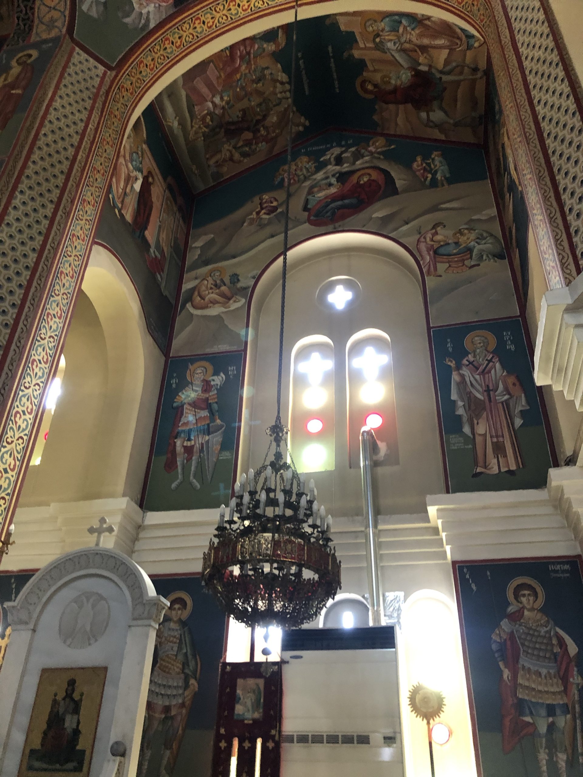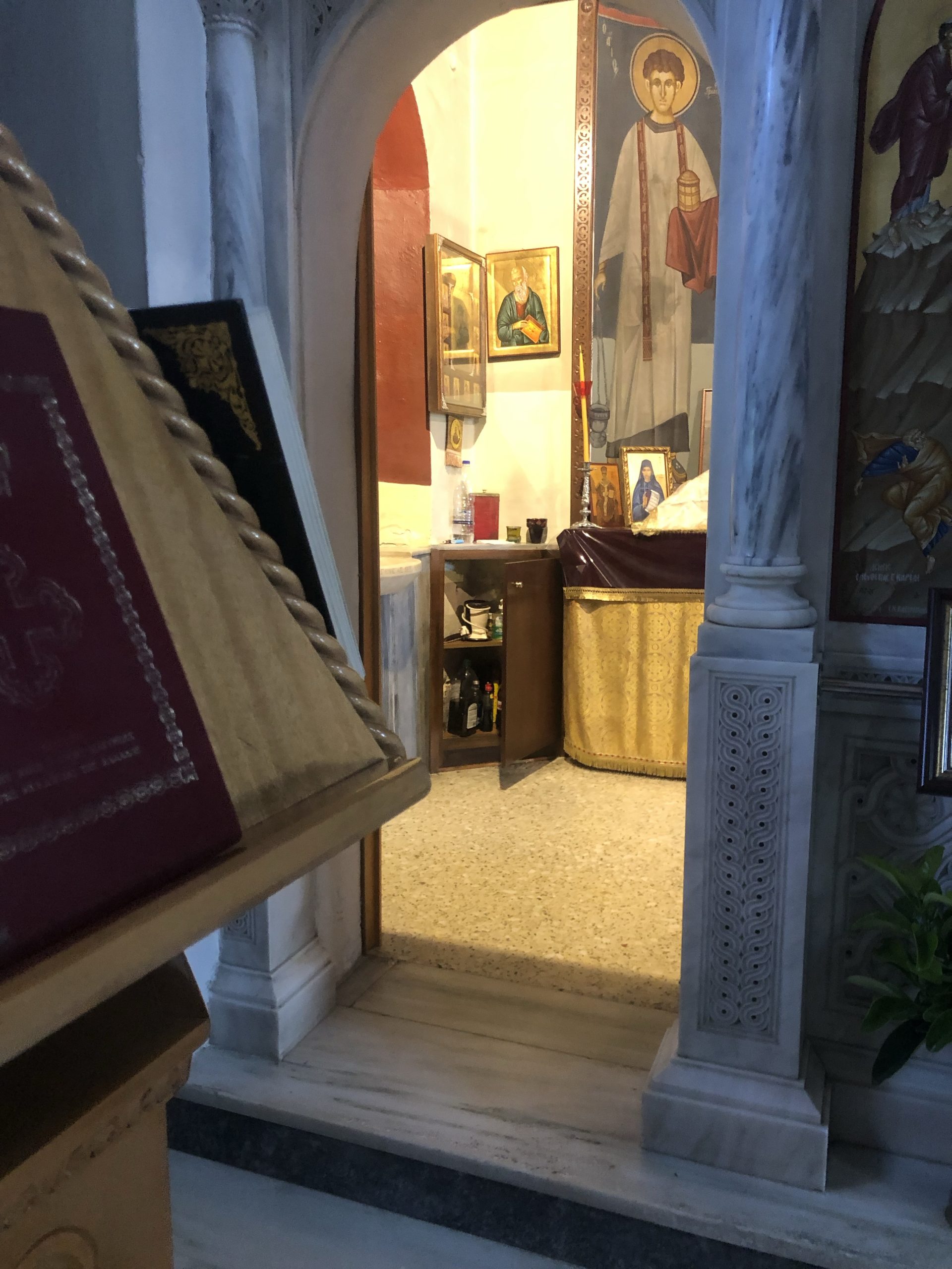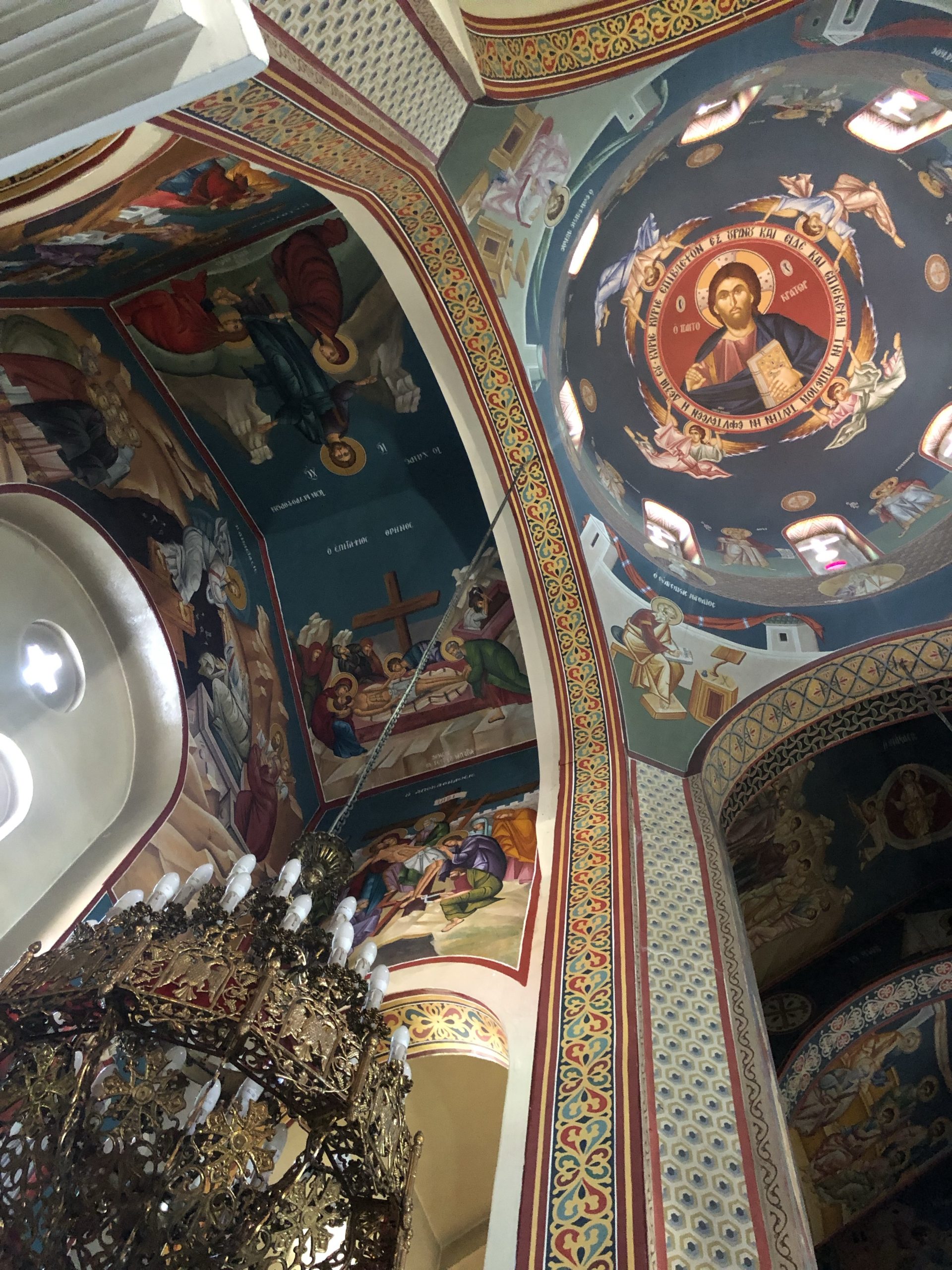 Visite de l’église orthodoxe de Batsi. Mon Dieu toutes ces peintures de personnages. De parfaits inconnus pour moi. Cela m’a fait penser aux vies minuscules de Pierre Michon. Et aussi à tous ces saints qui apparaissent dans la Légende Dorée de Jacques de Voragine. Le lien quel est-il. Une efficacité simple pour témoigner du passage d’un être humain. Que ce soit au fin fond de la Creuse, ou bien dans les arènes de Rome, n’a pas d’importance. On extraie une substance. Une brièveté et une efficacité pour dire l’essentiel de l’homme, du paysan, du martyr, et du saint. Sans chichi et sans artifice qui, par la digression, trahirait le but simple de témoigner de ce passage. Et puis ensuite on peut penser évidemment à une vie décrite par Flaubert dans un coeur simple. Et on voit tout de suite l’hérésie dans le perroquet empaillé en fin de partie.