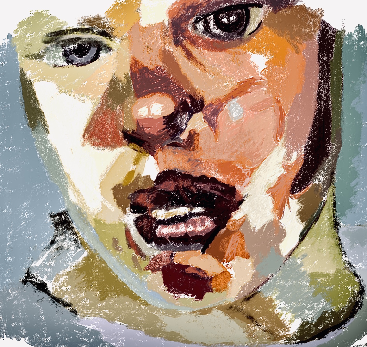 Pour tous mes ateliers, à la rentrée de janvier 2023, glissement de l’abstrait vers un peu plus de figuratif... Donc le prof prépare le boulot... Ici je me suis inspiré d’un grand format de Jenny Saville pour réaliser un petit format 10x10 cm sur papier. Et encore j’ai résumé le traitement. Mais suffisant pour saisir l’esprit je crois.