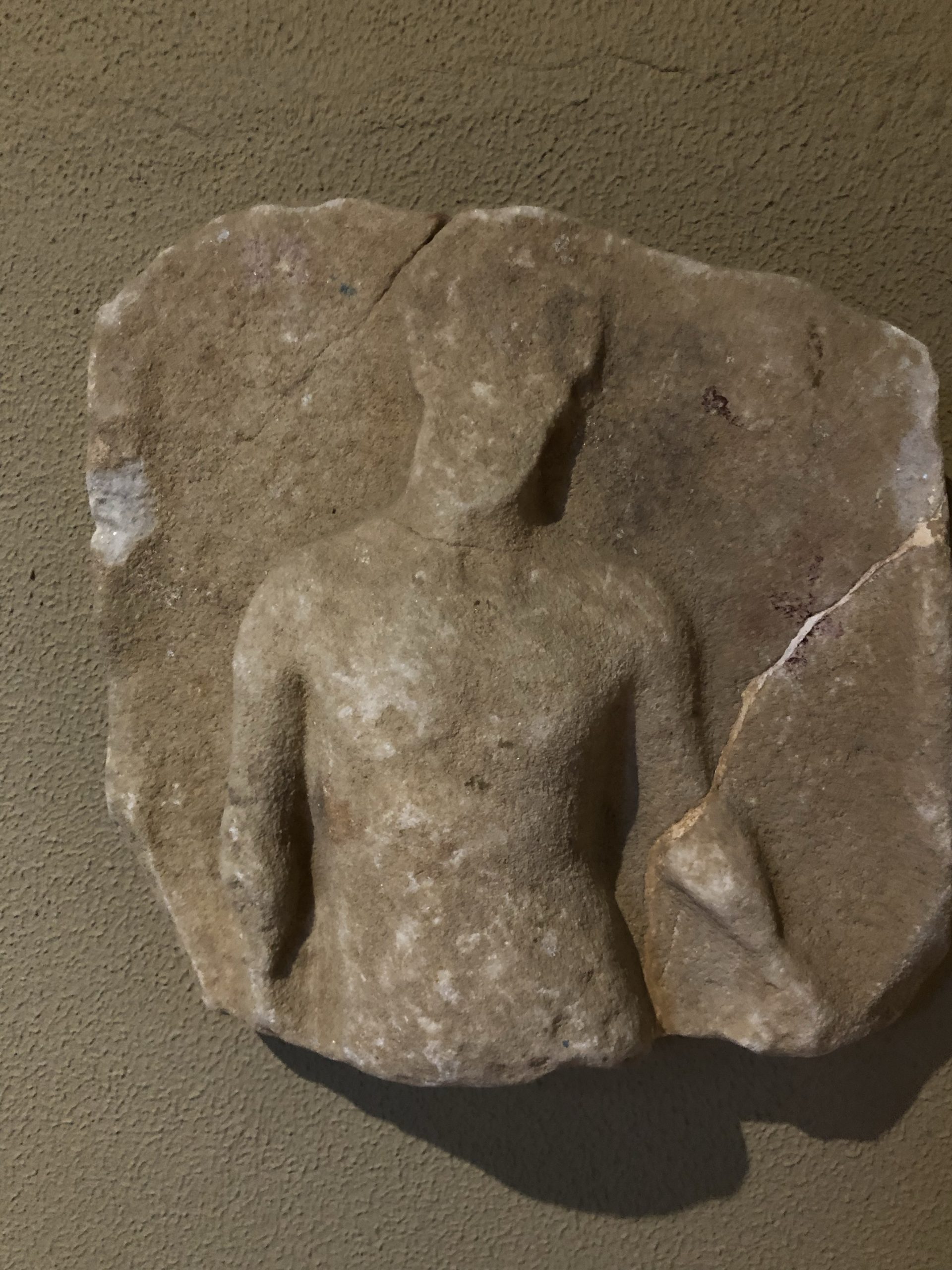 Photographie d’un fragment représentant un torse de femme, musée archéologique d’Andros