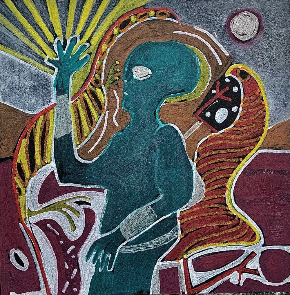 acrylique et feutres Posca 20x20 panneau de bois