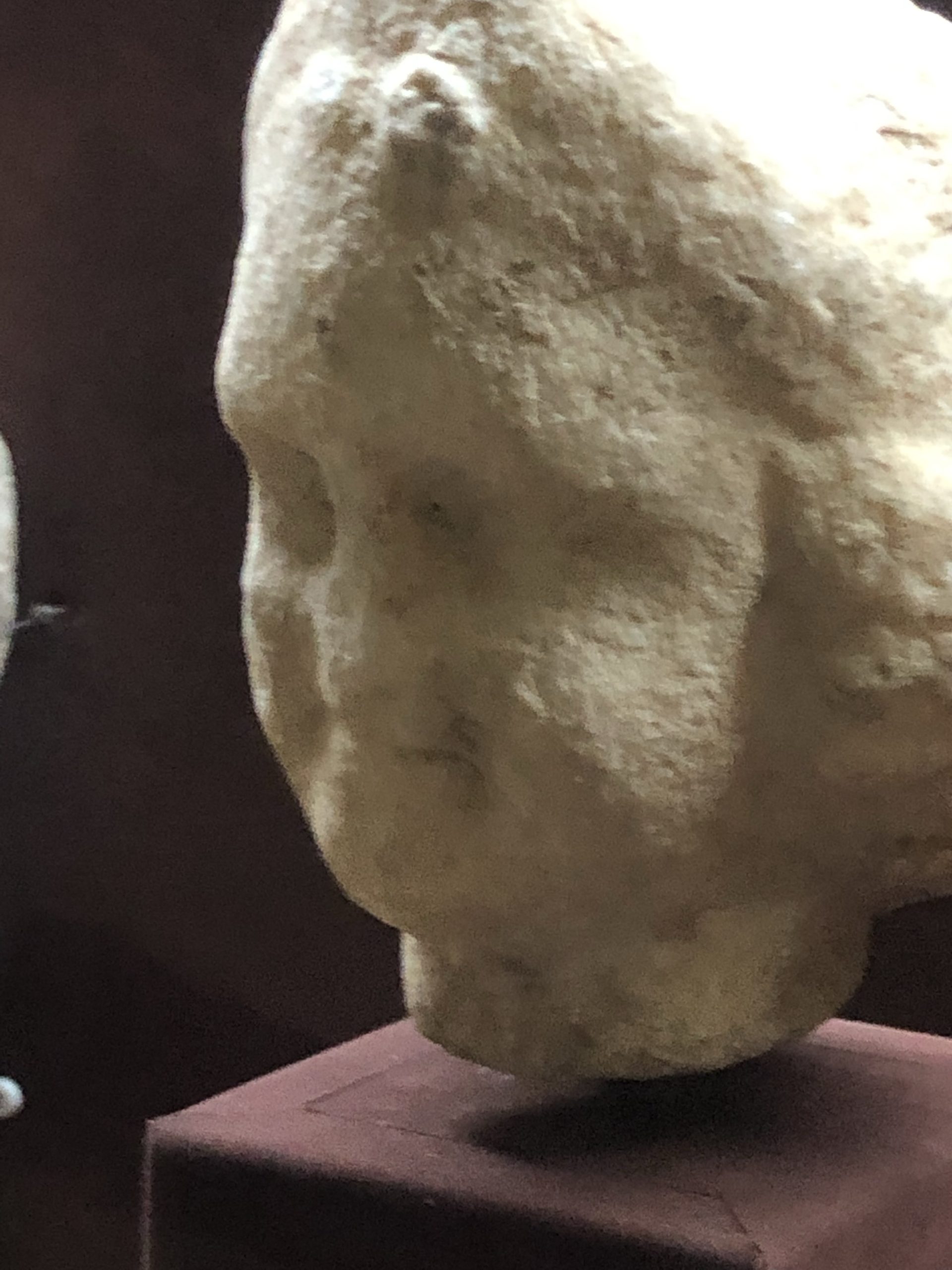 Photo d’une petite tête trouvée à Paleopoli, Andros, Grèce.