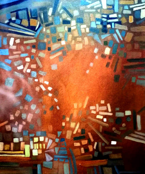 Où les choix mènent-ils vraiment ? Il fit la liste, mentalement, de ceux des dernières semaines — les prix retirés, les expositions réduites, la décision de ne plus vendre — et sentit le chemin dans son corps avant de le comprendre dans sa tête. Il avait quitté des habitudes, coupé des protections, et maintenant la moindre brise le prenait de face. Un oiseau qui chante au loin suffisait à lui faire mal. Il eut cette pensée un peu absurde et exacte : avec une oreille bouchée, au moins la douleur n’entrait que d’un côté. Il s’était tenu comme on tient en apnée, jour après jour, en descendant plus bas que ce qu’il croyait possible. Au fond, très loin, il lui avait semblé voir une forme connue, un bout de paysage intérieur qu’il pensait perdu. Illusion peut-être. Il allait encore douter quand la suffocation vint : le corps rappelait qu’il fallait remonter, respirer autrement, revenir à la surface des choses sans confondre légèreté et mensonge. Il avait eu des haut-le-cœur en pensant à ce qui l’attendait encore, aux engagements pris autrefois comme on jette des bouteilles à la mer et qui reviennent toujours, un matin, sur le seuil. Les projets s’accumulaient derrière lui. Il les sentait revenir, non pas en théorie, mais en poids : dates, rendez-vous, courriers, dettes, attentes des autres. Et pourtant il tenait. Pas par volonté héroïque, plutôt par une poussée sourde qui le gardait debout quand tout le reste cédait. Dans cette douleur, il recommençait à entendre quelque chose de simple : une zone calme, nue, où il respirait mieux. Ce calme n’était pas un trou. Il était une réserve. Il donnait envie de peindre, tout de suite, de saisir une toile, de prendre les pinceaux pour attraper ce que cette réserve ouvrait en lui. Il se méfia une seconde : et si c’était encore une ruse de l’imagination, une façon de se raconter une sortie ? C’est à ce moment que le bourdon entra dans l’atelier. Il le suivit des yeux : l’insecte tournait vite, cognait contre une poutre, contre un mur, repartait, puis venait se fracasser obstinément sur les vitres donnant sur la cour. Il alla ouvrir la porte. Encore deux ou trois chocs, puis le bourdon trouva la brèche et disparut d’un coup dans l’air. Il referma. Quelque chose se mit en place, d’un seul tenant. Il esquissa un sourire, pas joyeux, mais juste. Il remercia en silence ce qui, malgré tout, l’avait maintenu là. Puis il se mit au travail. illustration Décomposition, détail huile sur toile, pb 2019|couper{180}