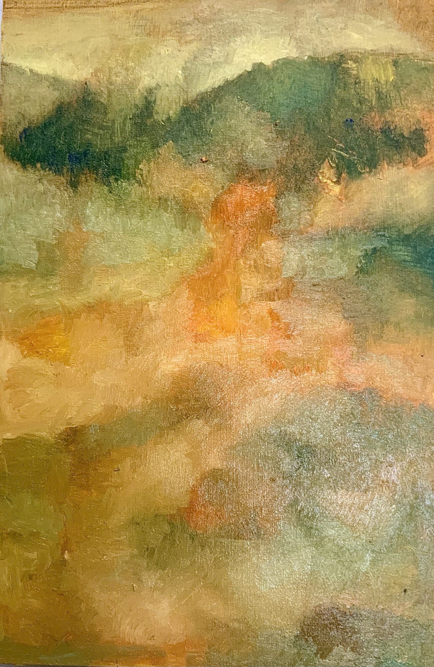 Toujours revenir à une idée de pauvreté. Non pas une mentalité de pauvre, se plaignant de manquer, de n’avoir jamais assez. Mais au contraire se débarrasser de ce qui gêne, encombre, brouille, rend confus, éparpille. Hier je faisais le constat d’un empêchement pour peindre à l’huile comme je le souhaiterais. C’est à dire pouvoir m’y mettre à n’importe quel moment, sans empêchement dû au fatras qu’il faut toujours mettre en place : le pot pour nettoyer les pinceaux, les mélanges de médium, toute la cuisine . Une panoplie à Installer, désinstaller, parce que je travaille dans le même espace dans lequel je reçois les élèves. J’ai pensé me faire un autre atelier a l’étage où je pourrais laisser le travail en cours, le bazar, mais trop de frais à engager pour rendre viable le projet. Donc ces derniers temps je me suis rabattu sur l’acrylique. Ce qui ne me convient pas. Le rendu n’est pas le même qu’à l’huile. Même une fois les toiles vernies. Une affaire de texture, de matières. Donc j’ai trouvé une piste, peindre à l’huile sans médium. Il me restait une ou deux plaques de bois que j’avais enduites de médium blanc, j’ai testé. Ce que je cherche c’est une matière, une pâte. Et tout de suite la règle du gras sur maigre m’est revenue. En général je commence par des couches fines diluées dans du white spirit ou de l’essence de térébenthine, mais j’ai décidé de ne pas utiliser de diluant du tout. Travailler directement à partir des couleurs des tubes en l’occurrence un orange de cadmium et un bleu de cobalt. Le but est de trouver la bonne épaisseur pour la première couche tout en prévoyant les prochaines, plus épaisses sans doutes. Toujours la règle... bien sûr à l’huile on est toujours assujetti aux différents temps de siccativité de la peinture. Pour les mélanges une fois les couleurs pures déposées j’ai utilisé du blanc de titane. Finalement suffisamment onctueux, fluide pour ne pas avoir besoin d’ajouter du médium. Bien sûr j’ai travaillé sur un petit format, des petites touches successives. Je ne crois pas que je puisse adapter ce procédé sur de plus grands espaces. A moins de presser les tubes entiers sur la surface puis d’utiliser des racloirs... mais dans ce cas j’en reviens à la peinture au couteau ce qui n’est pas mon but. Et puis c’est là que la mauvaise pensée sur la pauvreté revient, pas les moyens, et surtout la peur du gâchis comme de la facilité. Non le seul capital disponible est le temps. Un grand espace n’est qu’une vue de l’esprit finalement. Je devrais arriver à un résultat aussi sans me presser, en prenant bien le temps. Et même en utilisant le même pinceau. Un petit pinceau. À suivre...