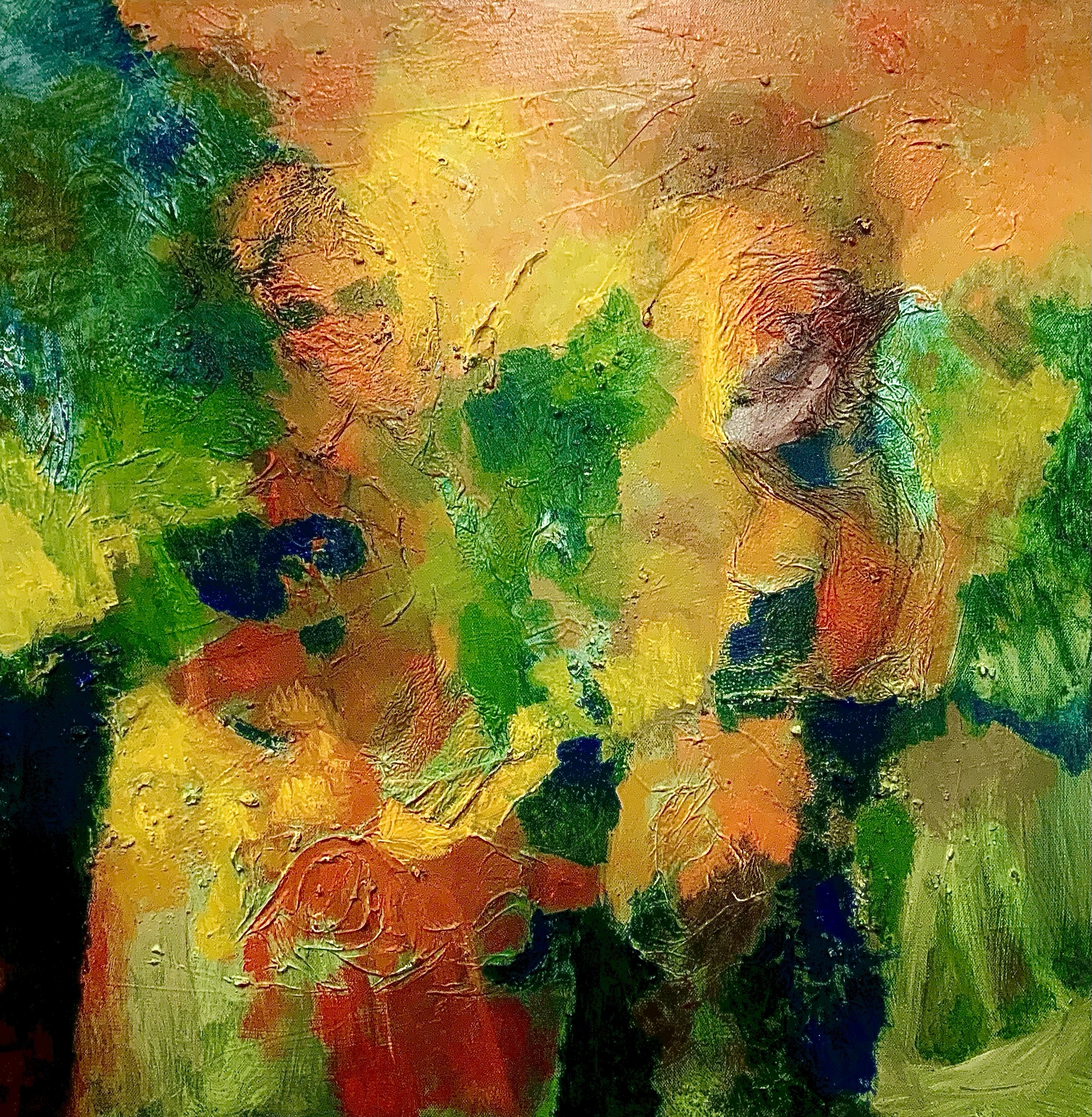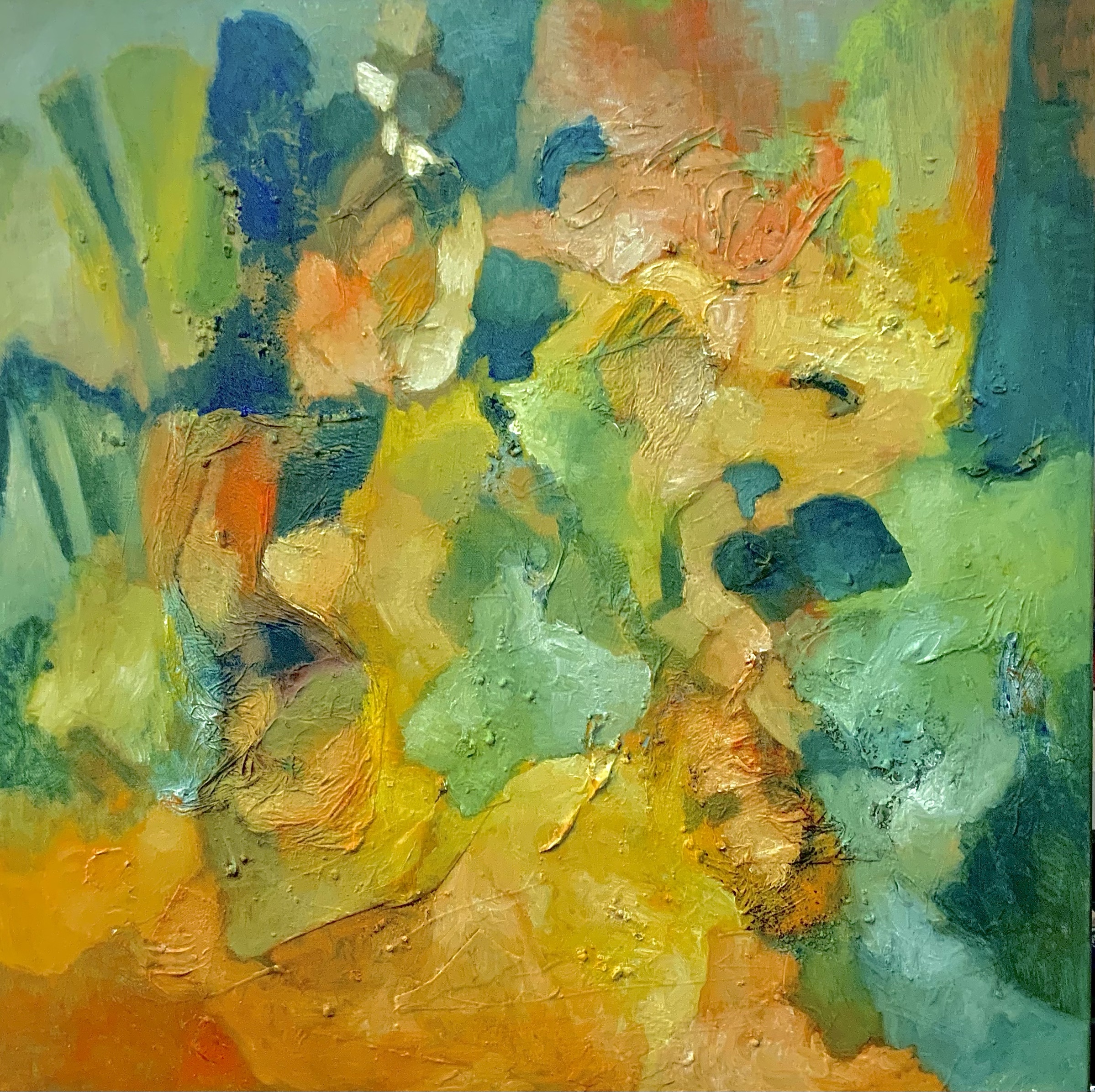 Une heure plus tard je regarde. Un format 80x80 cm de la peinture pure et sans gabegie avec toujours le même petit pinceau. Bon d’accord ça ne représente rien, ça ne dit rien, ça ne parle de rien. Ça ne me change pas beaucoup… peut-être même que ça me rapproche de ce qui m’éloigne.