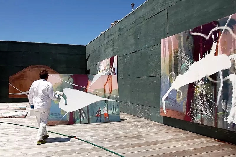 hier vu un documentaire à propos de l’artiste Julian Schnabel. réflexion à propos de la taille gigantesque de ses tableaux. ça en met plein la vue. déjà relevé cela en photographie lorsque l’on passe d’un format carte postale à une affiche de métro. la démesure comme marque de prestige. comme signe caractéristique de l’œuvre d’art dans le domaine pictural. De nos jours. et à l’inverse et d’après les statistiques aperçues sur mon blog l’intérêt de plus en plus accru des lecteurs pour les textes cours au detriment des plus longs. Donc dans une exposition se perdre dans la vastitude mais pour lire il faut que cela soit bref. Peut-être la raison de l’intérêt des blogs poétiques. l’attention au texte, à une mise en page, à son aération. Surtout pas trop long car aussitôt synonyme de chiant.