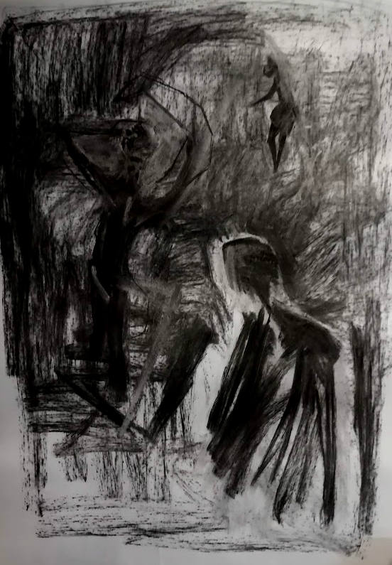 Englués encore dans la noirceur qu’il faut dissoudre jusqu’à la lie nous hurlons, pleurons, rions [...] alors que le silence nous couve de ses grands yeux sombres et brillants.