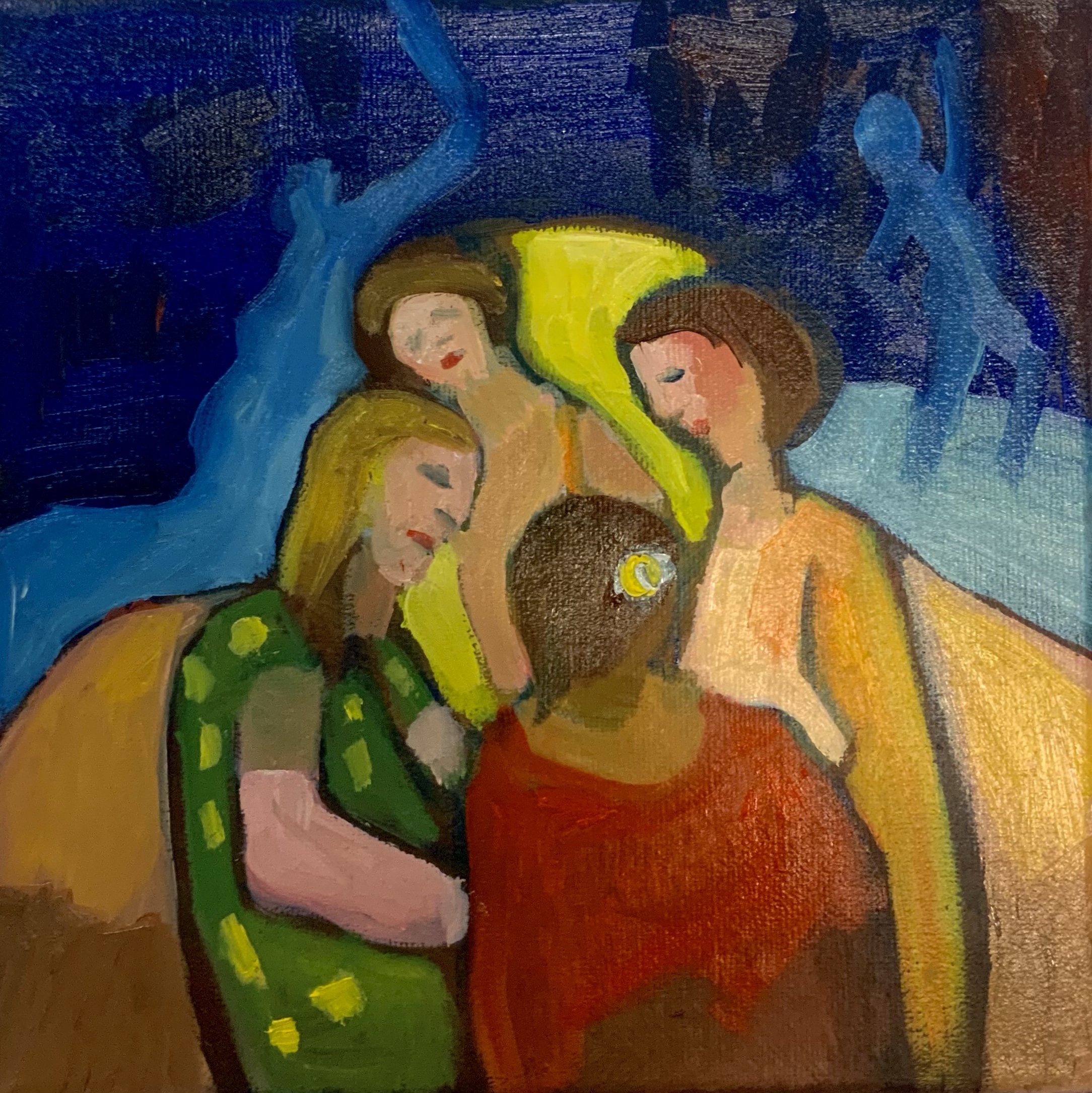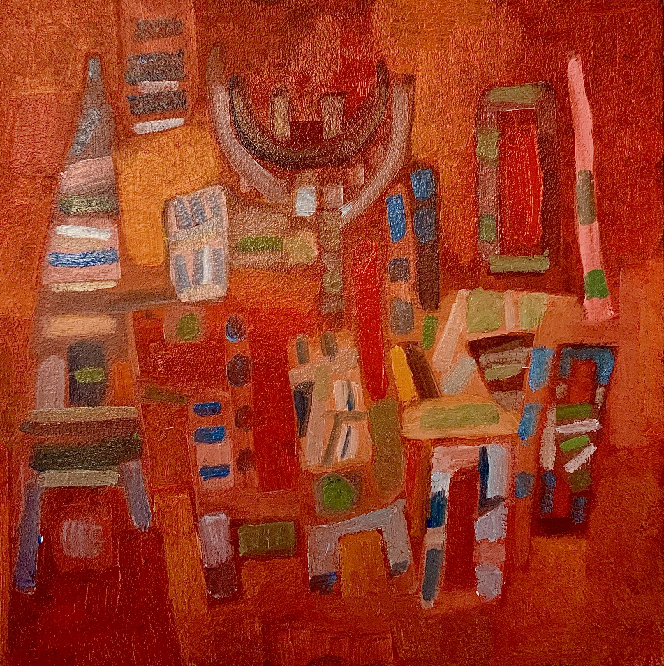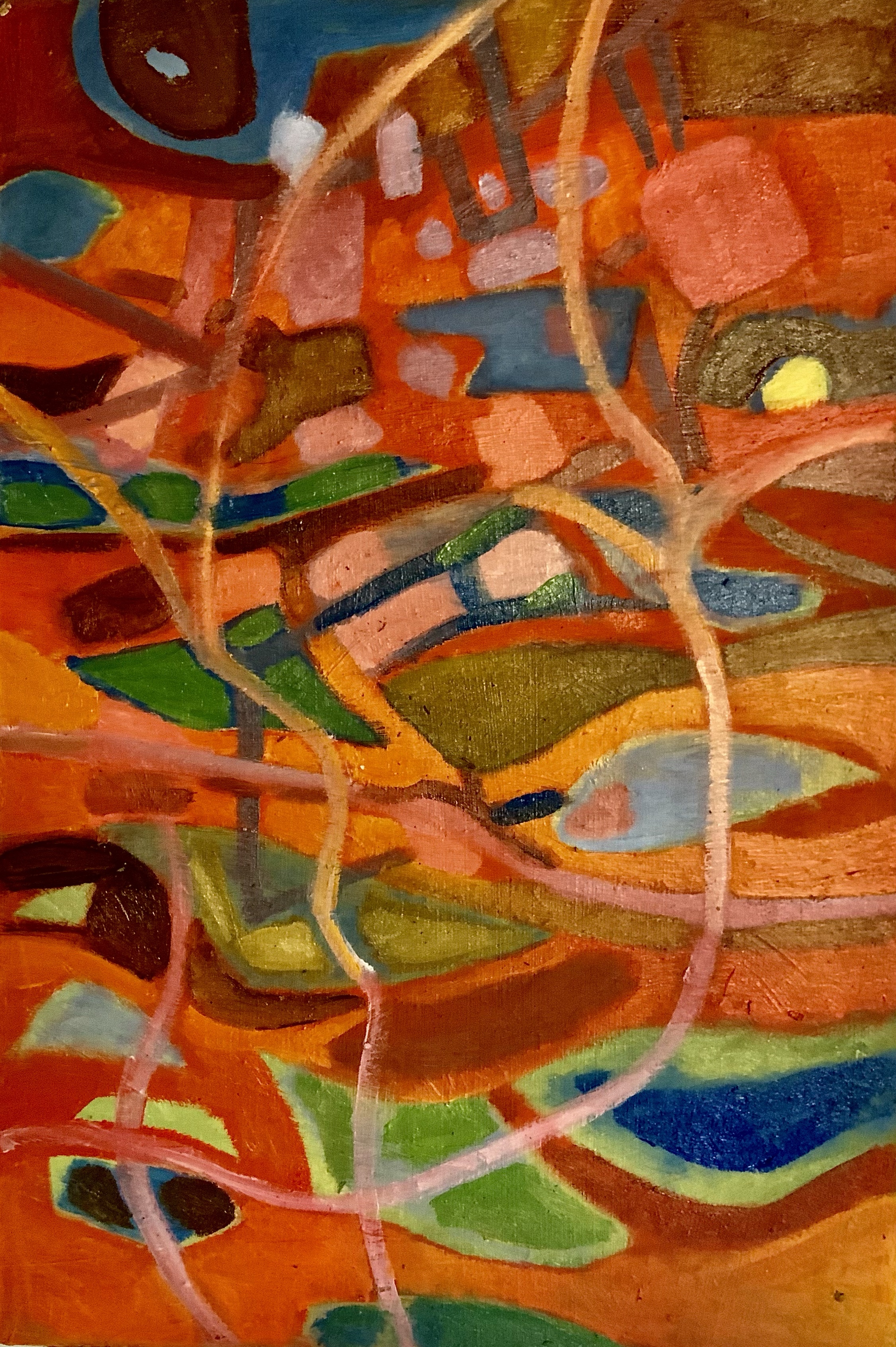 Peu de rituel pour peindre. Juste un pinceau et quelques couleurs pures sur la palette, les trois primaires, un peu de de blanc. La grande table au centre de l’atelier, choisir une place où je vois le tableau au fur et à mesure qu’il se dévoile. Eclairage blanc température lumière du jour. L’atelier dans son ensemble est plutôt rangé. Une impression de calme, rien ne dérange. C’est dans ce rituel là que quelque chose s’effectue à condition que j’y passe suffisamment de temps. Que je prenne mon temps. Un fond de musique où aujourd’hui une émission de carnet nomade de France Culture. On y parle de Tanguy. De Pontalis. La pensée est attirée et la main va son chemin avec l’œil pendant ce temps. Trois tableaux aujourd’hui. Un encore à l’état d’ébauche réalisée dans une rapidité étonnante. Mais sur laquelle je sais qu’il faudra revenir. Et puis les deux autres pour m’évader. De quoi, qu’elle importance de le savoir. Rituel et évasion.