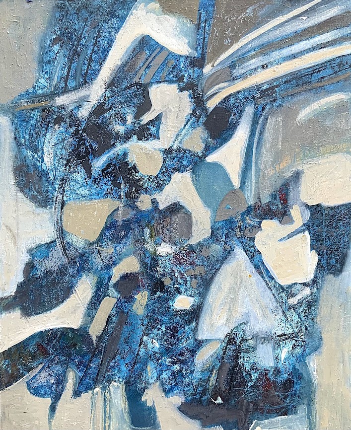 Nous l’avions évoqué et je l’avais mise de côté soigneusement, cette idée de texte de présentation à proposer au catalogue en même temps que la liste des œuvres avec leurs prix. Cette gêne d’expliquer la peinture à l’écrit comme à l'oral, aussi étonnante que soudaine, me cueille. Cet écueil dans la navigation pas si tranquille vers l’exposition, sans doute en suis-je l’inventeur, pour ne pas dire le responsable. Il me faut des écueils régulièrement pour échapper aux langueurs monotones de l’automne. En été aussi, en toute saison. Sans l’écueil, pas de sensation de danger ni de naufrage, autant dire pas d’aventure. Sans écueil, pas de créativité non plus. Je ne compte plus le nombre de fois où j'ai écrit ce texte. J'ai cru à une tendance masochiste durant ma jeunesse. Mais je crois que c'est plus poétique que ça, c'est dans un lieu situé avant toute psychologie. Et je vois bien qu'un préambule est nécessaire au préambule encore, pour retarder l'instant. L'instant d'évoquer ce voyage intérieur. Une série de leviers que je mets en place souvent inconsciemment pour finalement être prêt dans l'instant à soulever un monde qui ne serait qu'empêchement, ajournements, ennui, gravité ou pesanteur. Sans y penser à cet instant, c'est-à-dire sans barrière. L'essence ne suffit pas, il faut atteindre sans y penser à la quintessence. Celle qui n'appartient à personne et que tout un chacun retrouve dans l'intime. Parfois, justement lorsque j'y pense, je me dis : quelle exigence ! et plus encore lorsque j'y pense : quelle prétention, quelle vanité. Voilà la pensée qui ne pense qu'au risque et au danger et surtout invente mille façons toujours de s'en prémunir. Ça ne sert à rien d'aller contre non plus, de s'opposer. Il faut prendre cette pensée comme elle vient. La sagesse de la peur vaut bien la sagesse du risque, de l'audace au bout du compte. Ce qui est important c'est de ne pas perdre de vue l'unité. À quoi sert de voyager ? sans doute à la même chose que peindre, écrire, danser, rêver, et j'ai beau scruter l'horizon dans toutes les directions, je ne vois pas plus de raison que de destination précise. J'irais plus loin encore, À quoi sert de voyager ? puisqu'à chaque fois que l'on pense atteindre quelque chose, un pays comme un tableau, on n'en finit pas avec l'envie d'aller plus loin. À quoi sert de voyager alors ? peut-être à observer le cheminement du désir, apprendre à le connaître, faire un avec lui comme avec soi-même. Mon grand-père maternel était Estonien et il s'est rendu à Saint-Pétersbourg pour apprendre la peinture, parce qu'à l'époque il n'y avait rien d'aussi prestigieux en Estonie pour étudier l'art. Ce voyage intérieur commence ainsi, avec le départ d'un jeune homme que je n'ai jamais connu depuis son village vers une grande ville étrangère dans laquelle il se sent étranger. Cette sensation d'être étranger, je me suis toujours demandé pourquoi je l'éprouvais autant, étant né en France ? Je n'avais aucune raison valable de l'éprouver de manière si aiguë. Avant même de toucher un pinceau, d'imaginer devenir peintre moi-même, j'avais dans le sang ce legs de l'étrangeté d'être au monde comme un petit provincial découvre une capitale qui le subjugue. Cette étrangeté, ma mère m'en parlait, elle était peintre aussi. Elle avait les yeux gris bleus comme mon grand-père, comme moi-même, ce lien du regard en silence nous unit encore tous au-delà des séparations, des disparitions, un gris bleuté comme un ciel que j'imagine très bien au-dessus des villages d'Estonie. Un gris bleuté de la Baltique avec ça et là quelques lueurs d'orangers issues des profondeurs échappées de l'ambre. L'orange et le bleu que j'utilise souvent dans mes tableaux. L'héritage, c'est cette histoire constituée de bribes que l'on passe un temps infini à mettre bout à bout, des bribes souvent éparses, rien de vraiment ordonné, c'est une navigation aussi pour s'orienter à travers tout cela, pour s'orienter dans quelle direction ? Il y en a tant qu'on serait bien en peine d'en choisir une qui ne s'évanouisse pas soudain, remplacée par une autre tout à coup. Il y a autant de destinations possibles que l'imagination voudra bien en fournir. Peut-on faire confiance à l'imagination ? Parfois oui, parfois non. Parfois elle nous trahit aussi. Mais faut-il lui en vouloir pour autant ? Cette trahison elle-même ne fait-elle pas partie intégrante de ce voyage, de cette navigation ? Les plus célèbres navigateurs partaient autrefois en quête de destinations comme l'Inde et tombaient sur les Amériques. J'ai toujours conservé en mémoire ce genre d'anecdote. Que le but était un moteur de l'action mais qu'il était rarement sa véritable finalité, en tous cas pas de façon droite, directe, mathématique. Il fallait étudier la courbe, l'enseignement inscrit dans son cheminement sinusoïdal, ses méandres, j'allais dire sa féminité. Il fallait aussi étudier l'art de traverser les labyrinthes en lâchant les traités, les conseils, et faire sa propre expérience de l'égarement. Intuitivement je crois que j'ai toujours su qu'il se cachait un savoir perdu dans l'expression "passer du coq à l'âne" aussi bien que dans le jeu de l'oie. Deux cases en avant, quatre en arrière. Comme si cette expression comme ce jeu attiraient parfois l'attention sur la notion d'espace et de temps d'une façon bizarre. En tous cas bizarre pour moi. Lorsque j'étais frappé par cette curiosité, je m'en ouvrais à mes parents, à mes camarades et j'avais en retour des réflexions qui portaient sur le temps que je perdais à penser à ce genre de choses plutôt que de faire mes devoirs ou participer à des jeux collectifs. Passer du coq à l'âne, je n'ai jamais cessé de le faire toute ma vie par curiosité, par obstination, par dépit, et aussi pour voir, comme on dit au poker. Il y a quelque chose de désagréable