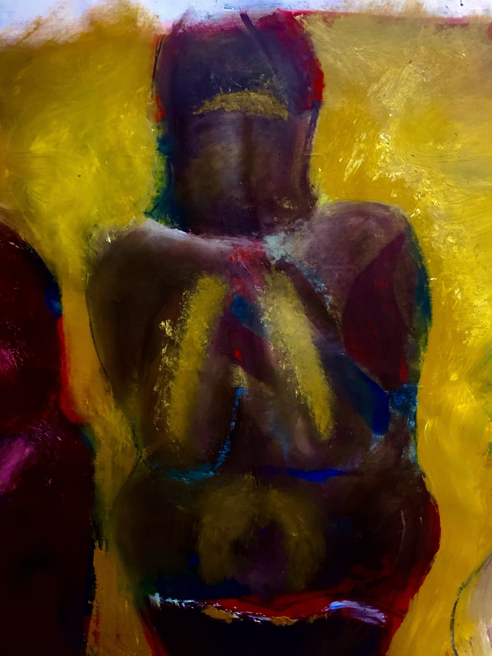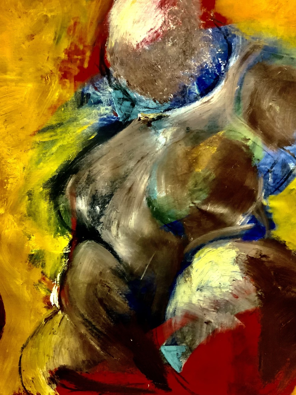 c’est juste une première ébauche réalisée aujourd’hui. le format est de 160cm x 80cm. technique huile et essuie-tout.
