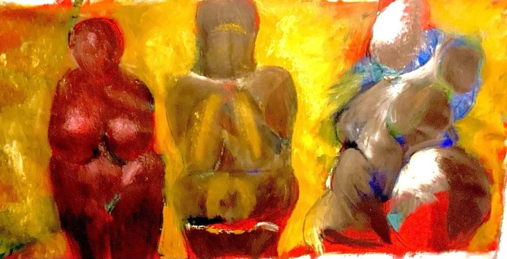 venus préhistoriques 160x80 cm huile sur toile détails et première ébauche