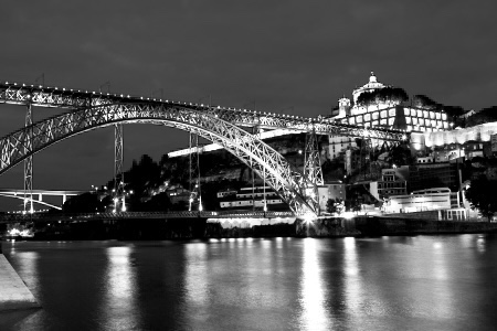 Voilà te voilà encore dans cette ville où il faut monter et descendre, que l’on apprend à arpenter a pas mesurés Le pont d’ Eiffel au dessus du Douro une immense masse d’ombre, rien ne bouge, et puis tu aperçois un homme assit sur le quai qui écrit à la lueur chiche d’un réverbère. Tu aimerais bien savoir ce qu’il écrit sur son carnet mais tu t’empêches de l’aborder. Tu restes ainsi jusqu’au matin a l’observer jusqu’à ce que les premiers rayons de la lumière dévorent tous les rêves que tu as pu t’inventer durant la nuit. Puis soudain tu lèves les yeux au ciel, la lune et le soleil. Événement rare, présage d’une étrange journée.