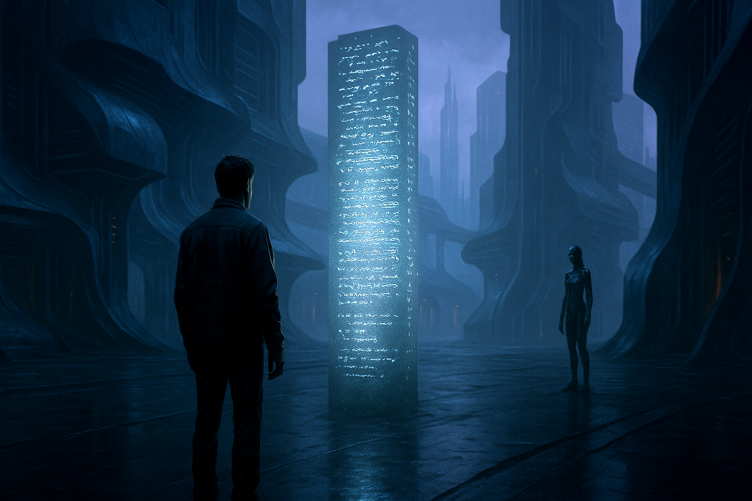 Il n’avait pas fermé l’œil, mais ce n’était pas de l’insomnie. Plutôt une veille poreuse, comme si son corps persistait à fonctionner sans savoir à quoi. Il n’y avait pas eu de rêve. Seulement une sensation : quelque chose s’était inversé dans la structure même de la nuit. Au réveil — si c’en était un — tout semblait identique. Le module bioguidé avait ajusté sa température à son rythme cardiaque. Les parois ondulaient doucement. L’air avait cette densité particulière, légèrement métallique, propre à Gor. Il se leva. Et c’est là que cela commença. Son transpondeur n’affichait plus aucune donnée. Ni interface, ni cartographie, ni rythme interne. Juste un point clignotant. Non localisé. Il tenta de l’interroger mentalement. Le retour fut immédiat, mais sans syntaxe. Une impulsion. Une image. Fugace, incohérente : une sorte de *masque*, en négatif, dont les contours pulsaient à contre-temps de ses propres pensées. Puis, soudain, un mot. Mais pas un mot affiché. Un mot ressenti. > "Insoluble." Il se figea. Le mot n’était pas adressé. Il n’était pas une réponse. C’était une présence. Quelque chose ou quelqu’un — dans la ville ou en lui — venait de parler sans dire. Une intention, une balafre de sens projetée dans son esprit. Il sortit. Gor avait changé. Non dans sa forme — les structures étaient les mêmes, les rues toujours vides, les bornes nutritives muettes — mais dans leur ntensité. Comme si chaque élément avait été légèrement déplacé dans un autre registre de réalité. Les angles semblaient plus nets. Les ombres, trop longues. L’air vibrait comme une tension mal réglée. Et, surtout, un nouveau son flottait — pas un bruit, mais une **absence de bruit trop précise**. Au détour d’un axe suspendu, il vit l’impossible : Une colonne de texte, flottant au-dessus du sol. Haute d’environ deux mètres. Composée de signes mouvants, instables, qui pulsaient lentement comme une respiration. Aucun support. Aucune logique de projection. Le texte n’était pas projeté : il était. Et à mesure qu’il s’approchait, il comprit : > C’était le récit. > Le sien. Les phrases changeaient au rythme de ses gestes. Chaque clignement, chaque hésitation générait une variation. Il avança encore. Le texte disait maintenant : > "Il lut cette phrase, et comprit que le chapitre avait commencé sans lui." Il recula. Le texte resta en suspens, puis s’effaça. Derrière lui, une silhouette. La femme en obsidienne. Mais cette fois, elle le regardait. Et dans ses yeux, il vit — non pas un message — mais **une fonction**. Elle ouvrit la bouche. Aucun son. Seulement ce mot, inscrit sans voix dans l’air entre eux : > "Fusion." Puis elle tourna le dos et disparut. Il resta là, seul, face à l’espace vide où les mots avaient flotté. Et il sut que Gor venait d’entrer dans une autre phase. Le récit avait pris conscience de lui-même. Et l’observateur n’était plus à l’extérieur.|couper{180}