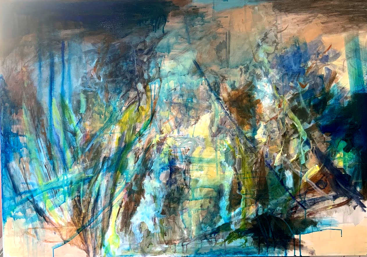 Remonter à l’origine des Védas, et on tombe sur les Rishis, ces sages qui ont vu et qui chantent ce qu’ils ont vu. Des louanges. Mais qu’ont-ils vu ? Est-ce si important de le savoir ? Non. Comme il ne paraît pas important de voir un tableau avant de le faire. On ne veut pas s’approprier une vision. Pourquoi ? Parce que le temps n’existe pas, que tout est accessible au présent. Qu’il est possible de voir en même temps que faire. À condition que l’on s’installe dans ce mode de la louange. On s’émerveille de ce que l’on voit, de ce qui se fait sous nos yeux et on le peint. Et le sourire n’est même pas nécessaire. C’est une manière de le chanter. C’est aussi simple que cela. Ensuite, on peut prendre un malin plaisir (intellectuel) à vouloir tout expliquer, à tout compliquer. Mais ce n’est qu’un détour. Ce n’est qu’une peur. Le chant juste, le geste juste, la vision claire ne nécessitent même plus d’écarter doucement le mental et ses explications. Il s’écarte par logique. Ce qu’on n’a pas connu enfant, poussé par l’envie de grandir, l’urgence d’avoir, de savoir, on le connaît dans la certitude d’être ce même enfant dépourvu de but, ce vieillard, cette cendre.|couper{180}