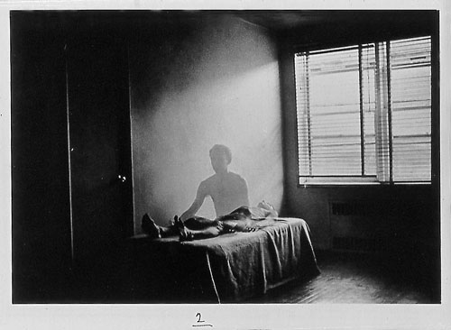 Dans de grandes profondeurs, descendre. Lesté par le dégoût de plus en plus pesant des hommes, descendre, chaque jour encore un peu plus bas. Et je n’oublie pas le mien. Mon propre dégoût vis-à-vis de moi-même. Ce moi-même qui peu à peu se détache : écailles, peaux mortes, restes de vieux fiel, glaires et pituites. Nu, descendre encore plus bas. Ne pas chercher un sol sur quoi poser le pied. Descendre sans illusion de sol à atteindre. Flotter tout en bas, avec toute la pression qui appuie sur chaque centimètre de ce corps physique, mais plus encore sur ce vieux corps constitué de pensées obsolètes. Descendre et se délivrer, muer. Elle avait le mot amour sur les lèvres. De temps en temps, elle s’arrêtait devant une glace et s’en remettait une couche, comme on remet du rouge. Intérieurement, je trouvai cela révoltant. Si elle avait été moche, je l’aurais sans doute dit plus franchement. Peut-être. Les moches aussi ont droit à un peu de compassion. Mais la manière dont elle usait du mot amour l’enlaidissait de jour en jour, toute belle qu’elle était. J’ai toujours été déçu par cela : cette beauté extérieure s’opposant à une sorte de ruine mentale. Comme si mon intelligence, ou ma sensibilité, se trouvaient blessées par ce hiatus entre l’aspect plastique et l’imbécillité intérieure. Et, pour avouer totalement ma lâcheté, j’ai souvent fait l’impasse sur l’humiliation pour me repaître de chaleur humaine, parce que celle-ci m’était inconnue, donc d’autant plus convoitée. Quand on atteint un tel degré d’épuisement face aux bons sentiments, on ne dit plus grand-chose. On se tait. Toute parole inconsidérée ne ferait que nous révéler sous notre pire apparence. illustration Duane Michals|couper{180}