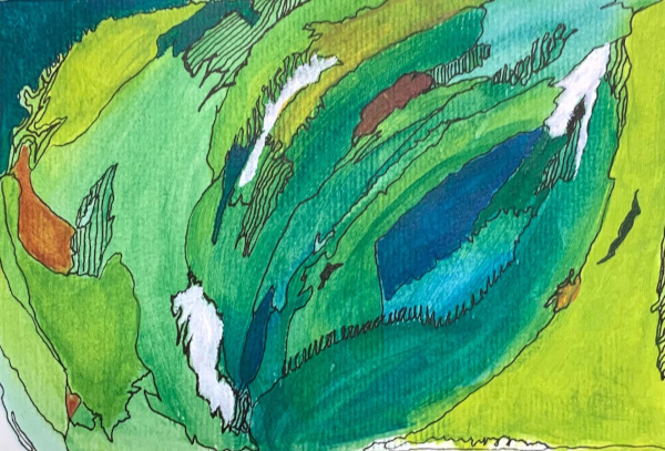 Bien, j’ai acheté un nouveau chauffage — à gaz, cette fois. Vous n’aurez plus ce prétexte de dire que vous n’y arrivez pas à cause du froid. Il fait vingt degrés, le café coule ; on peut travailler. Aujourd’hui, format carte postale : période des étrennes, puis des vœux. On reste propre : scotch autour, marge d’environ cinq millimètres. Si vous n’avez pas de ruban de masquage, prenez un crayon. Pas la règle : on va voir si la main tient la route. Maintenant, un fond à l’acrylique. Deux couleurs maximum. Trois si vous comptez le mélange, je vous le rappelle. Laissez vivre les traces, ne cherchez pas l’aplat impeccable : les coups de pinceau sont les bienvenus. Faites-en trois, ça évite de stagner ; pendant que l’une sèche, vous attaquez l’autre. Avec la chaleur, ça va vite. C’est bon ? Vous avez vos trois fonds ? Parfait. Je vais chercher le café. Voilà des feutres noirs à pointe fine. On regarde ce qu’on a fait, et on entoure tout ce qu’on voit : la moindre forme, le moindre accident, une différence de valeur, un bord, une tache. Il faut y aller franchement mais sans écraser la pointe : on glisse, on n’appuie pas. Non Mireille, on ne décide pas d’avance ce que ça doit devenir. On regarde. Et je te préviens : chaque “je suis perdue”, c’est un euro. Rires. Vous entourez, vous entourez encore. Vous voyez une forme ? Vous en voyez dix autres autour. C’est bon ? Pas encore ? Très bien, je sers le café. Toujours pas de sucre, Simone et Catherine ? Ensuite, on passe à l’intérieur des formes. Avec les mêmes feutres, vous fabriquez les valeurs : hachures, points, ronds, chiffres, lettres, signes bizarres, tout ce qui vous tombe sous la main. Oui Huguette, des étoiles si tu veux. Et n’oubliez pas : quand vous remplissez une forme, vous en faites apparaître une autre à côté ; regardez ce qui se passe entre vos traits autant que vos traits eux-mêmes. Christine demande si ce ne sera pas difficile de trouver le négatif. Rires. Qui a fini ? Lucie ? Attends, je regarde. Non, ce n’est pas fini : tu as laissé des zones muettes. Reprends ton fond, cherche encore. Il reste des choses que tu n’as pas vues. Continue. On prend le temps de regarder jusqu’au bout, même si ça agace, même si ça fatigue. Voilà. On part d’un fond un peu sauvage et on le pousse à parler. Ce n’est pas un tableau à accrocher au musée, on s’en fout. Ici, on travaille. Et si, au passage, ça vous remet à votre place et que vous voyez un peu mieux ce que vous faites, tant mieux. Allez, buvez votre café pendant qu’il est chaud, et reprenez vos feutres.|couper{180}