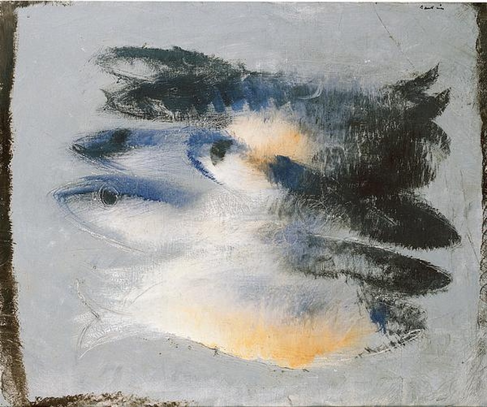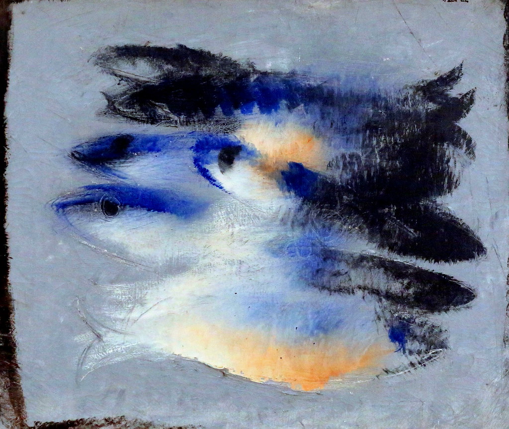 Devant eux Texte initial Je me suis arrêté devant eux. Ils n’appelaient pas, ne cherchaient rien. Ils étaient là. Des taches sombres, informes, à peine définies par un contour hésitant. Pas de fond. Pas de surface d’accueil. Juste cette matière grise, trouble, posée sans profondeur mais pourtant chargée de silence. Je savais que c’étaient des poissons. Il fallait les regarder longtemps pour que cela se confirme. Ils flottaient, suspendus, dans une immobilité sans eau. Leurs yeux, noirs et vides, n’étaient pas tournés vers moi. Ils ne regardaient rien. Et pourtant je me sentais vu, traversé. Il n’y avait ni décor, ni scène, ni narration. Seulement ces présences fragmentées, obstinées, dérangeantes, que la peinture refusait de dominer. Ce n’était pas un tableau à comprendre. C’était une masse à encaisser, une lenteur à éprouver. Je suis resté là un long moment. À guetter je ne sais quoi. À attendre qu’ils se dérobent ou qu’ils surgissent. Puis j’ai fini par m’arracher à cette fixité. J’ai rejoint la lumière du jour, la rumeur de la ville, le passage des heures. Mais je savais qu’ils n’étaient pas restés dans la toile. Ils m’avaient suivi. Réduction Ils étaient là. Taches. Pas d’appel. Pas de fond. Flottants. Sans eau. Sans regard. Mais je fus vu. Rien. Pas de décor. Pas d’histoire. Pas de scène. Présences. Résistantes. Inclassables. Je suis resté. Ils sont restés. Je suis parti. Ils ont suivi. Traduction anglaise — Before Them I stopped before them. No call. No search. They were. Dark stains. No shape. No ground. No welcome. Grey stuff. Floating silence. Fish, maybe. But waterless. Still. Eyes blank. Not on me. Still, I felt seen. No scene. No story. Just them. I stayed. They stayed. I left. They followed.|couper{180}