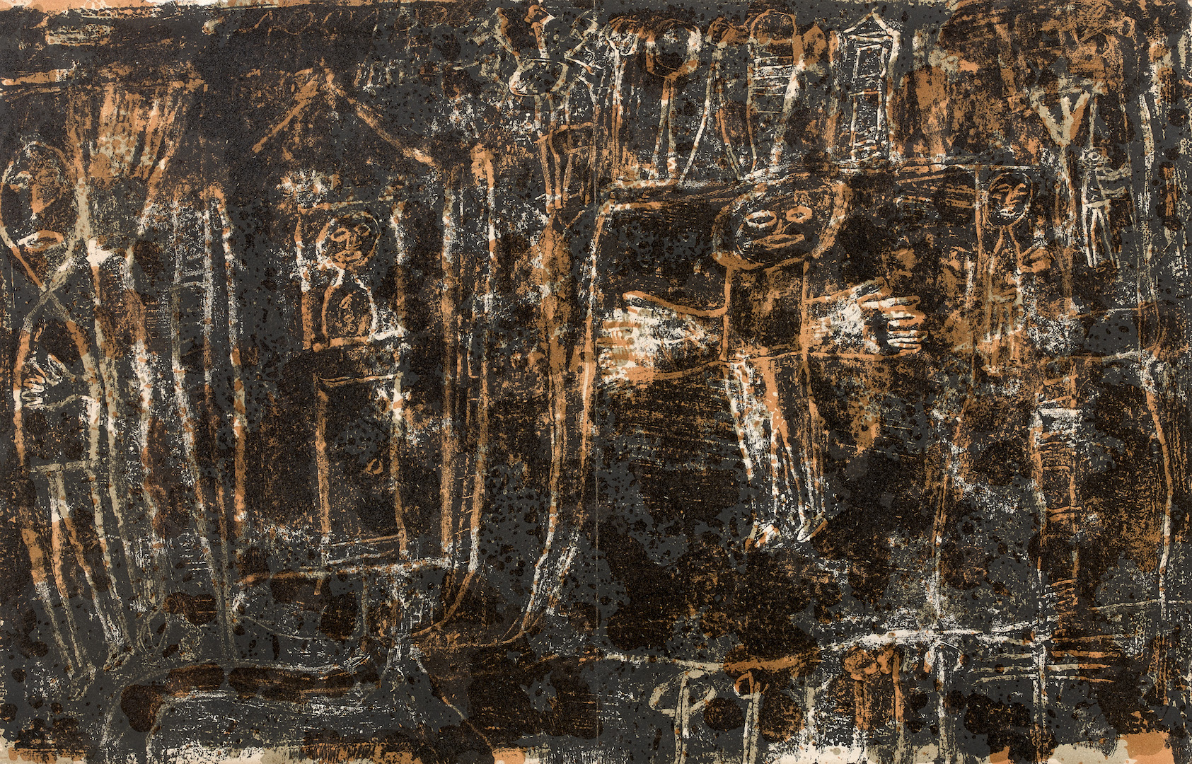 Depuis quelque temps, j’écris tous les matins. C’est devenu une nécessité. Un passage obligé. Ce que je nomme un sas. Il faut que j’écrive avant de faire quoi que ce soit d’autre. Avant d’entrer dans la matière du monde. Avant de peindre. Avant même de penser. WordPress m’y a aidé, d’une certaine façon. De façon puérile sans doute, mais efficace. Ces petites médailles distribuées automatiquement : "Vous avez publié dix jours de suite. Bravo. Continuez." Cela amuse. Cela conditionne. Cela installe. Après trente jours, l’habitude est là. L’habitude a pris. L’écriture est devenue le socle. Ce que je dois faire. Ce que je fais. Quand j’ai écrit, j’ai tenu ma part. Ensuite, le jour peut venir. Ce matin, après le texte, je tombe sur une lithographie de Jean Dubuffet. Au musée. Un mur. Une surface noire, râpeuse, griffée. Une procession de figures. Humaines sans l’être. Alignées. Debout. Les bras ouverts ou levés. Le regard vide. Les membres à peine ébauchés. Je reste longtemps devant. Je ne lis pas. Je regarde. Je ne cherche pas le titre. Je m’en tiens à ce que je vois. À ce que cela provoque. L’impression d’un monde cuit, figé, rongé. Des corps dans la suie. Des cris collés au silence. Aucun espace. Aucune parole. Dubuffet appelait cela Art Brut. C’est un nom, mais ce n’est pas une explication. Ce que je vois, ce sont des empreintes. Des restes. Comme si l’image avait absorbé ceux qui la regardaient. Ou peut-être ceux qui l’ont faite. On ne sait pas d’où ces formes viennent. Elles ne racontent pas. Elles ne désignent pas. Elles sont là. Elles se tiennent là, et elles ne bougent pas. Elles témoignent. Je pense à l’après-guerre. À ce moment où l’art ne peut plus prétendre représenter l’humain comme avant. Trop de morts. Trop de silence. Dubuffet gratte, blesse, attaque la surface. Il refuse la beauté, la narration, la culture. Il cherche ailleurs. Dans l’oubli. Dans la marge. Dans les gestes perdus. Cette lithographie ne cherche pas à séduire. Elle ne déploie rien. Elle expose. Elle oppose. Elle oblige. Je la regarde encore. J’ai le sentiment que l’écriture du matin, le besoin de passer par elle, vient du même endroit. D’un endroit sans forme. D’un mouvement intérieur qu’il faut faire apparaître, sans forcément comprendre. Je quitte la salle. Mais l’image reste. Elle m’accompagne. Comme le texte. Comme la nécessité.|couper{180}