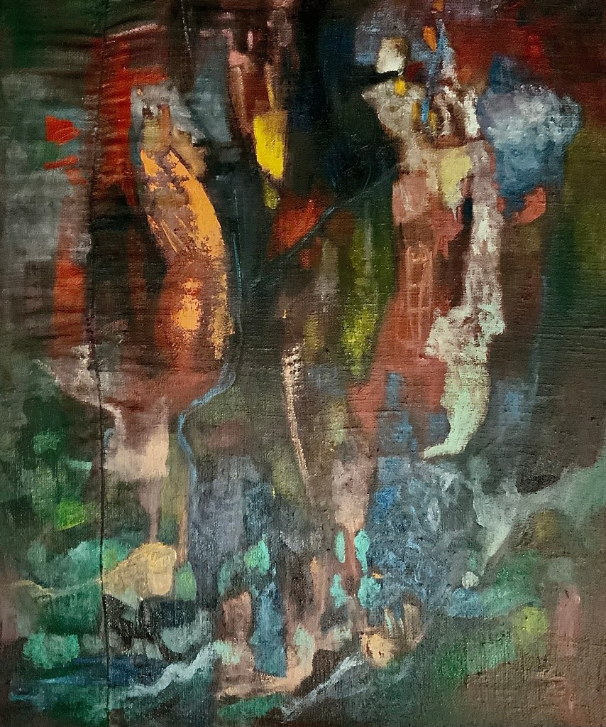 Les premières masses et couleurs d'une toile, janvier 2023 Tu peux t’exercer à l’arborescence comme on vide une possibilité du choix. Du choix tel qu’on l’entend généralement : un pauvre choix, un choix paresseux. Ensuite, ce que ça donne, c’est une suite de mots, de concepts, de couleurs, que l’hyperlien ou l’hypertexte peut réunir dans de nouvelles formules. Non pour aller en quête d’une originalité – ce n’est pas ça, et tu n’y crois pas de toute façon –, mais pour dire une chose ancienne autrement. Pour créer de nouveaux possibles afin que cette chose soit compréhensible dans un instant T, dans une époque, dans une culture qui a oublié ses racines, sa raison d’être. Pourquoi la Torah et le Talmud existent-ils, sinon justement pour rester optimistes quant à ces possibilités de réorganiser le même en autre chose ? Autre chose qui serait à l’image de l’infini, c’est-à-dire qui ne s’arrêterait jamais, sauf pour repartir à chaque fois. Un mouvement perpétuel. Te voici, en ce moment, en train de travailler six tableaux en même temps. Tu passes de l’un à l’autre quand tu cales sur l’un. Quand le coup de pinceau de trop te semble menaçant : celui de trop en dire ou trop en faire. Et cette énergie que tu interromps, plus ou moins volontairement, retrouve un nouveau souffle sur une autre toile, et ainsi de suite. Ce qu’il te faut accepter, c’est le temps comme donnée fondamentale dans laquelle tu peux déployer une certaine quantité d’énergie par tableau. Mettons une heure. Une fois celle-ci achevée, une autre temporalité devient de nouveau possible – une heure neuve. Ce qui ne change pas, c’est la gamme de couleurs que tu utilises. Pour l’instant, c’est elle qui crée le lien. Les possibilités d’agencer ces couleurs sont elles aussi infinies. Sauf que tu dois tenir compte, à chaque fois, de l’espace, des autres couleurs qui environnent une couleur, des valeurs, du contraste que tout ce puzzle produit. Et parallèlement à cela, une multitude de sujets, d’idées sont là, qui pressent pour sortir, comme un troupeau de moutons ou de brebis. Ça bêle dans tous les sens à l’intérieur, mais tu ne les écoutes pas, tu t’en fous : une chose après l’autre. Et puis, ce pari dont tu n’oses pas vraiment parler : que le sujet viendra quand il devra venir. Une fois l’assemblage achevé, tous les gestes successifs réalisés dans ce que tu nommes probablement à tort « l’aléatoire ». Aléatoire tant que tu n’as pas confiance aveuglément en ce qui se passe : voilà la vérité. Et intuition que, confiance ou pas, ça ne changerait rien. Qu’en allant ainsi ton bonhomme de chemin, il faut continuer d’écarter les faux buts, se laisser cueillir par ce qui, de toute façon, arrivera.|couper{180}