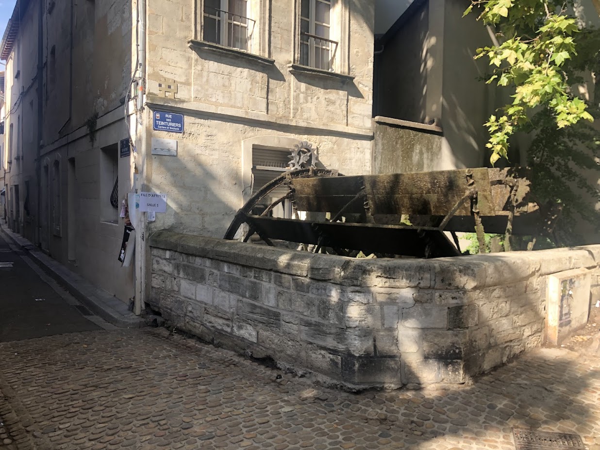 Arrivés près de la gare. Rue de la République, la bible, les pass. Repas rue des Teinturiers. Formule à 18. Flâné un peu. Cherché un square. Attendre. Pas avant 17 heures pour entrer dans les lieux. Montfavet. Rase campagne. Petit chemin défoncé, encore inondé. Maison vaste, propre, tranquille. Le propriétaire parle beaucoup. Accent supportable. S. et J. aux courses. Spectacle choisi : L’ouverture des Hostilités. Quatre places. 56 euros avec les cartes. D. paie. Parking des Italiens. Bondé. Marche. Théâtre des Doms, bas des escaliers. Salle pleine. Jeunes. Belges. Pas dormi. Assez admiratif. Envie de me laisser emporter par la transe collective, presque, séance de Gospel. Mais non. Tenu bon. Retour tard. Pas faim. Salade tomates, pâtes. Couché 1h30. Machine, casque, sommeil direct. matin, Montfavet, frais à froid. Petit vent. Égouttement de la rosée. Croassements. Coq enroué. Colombes. Moineaux.|couper{180}
