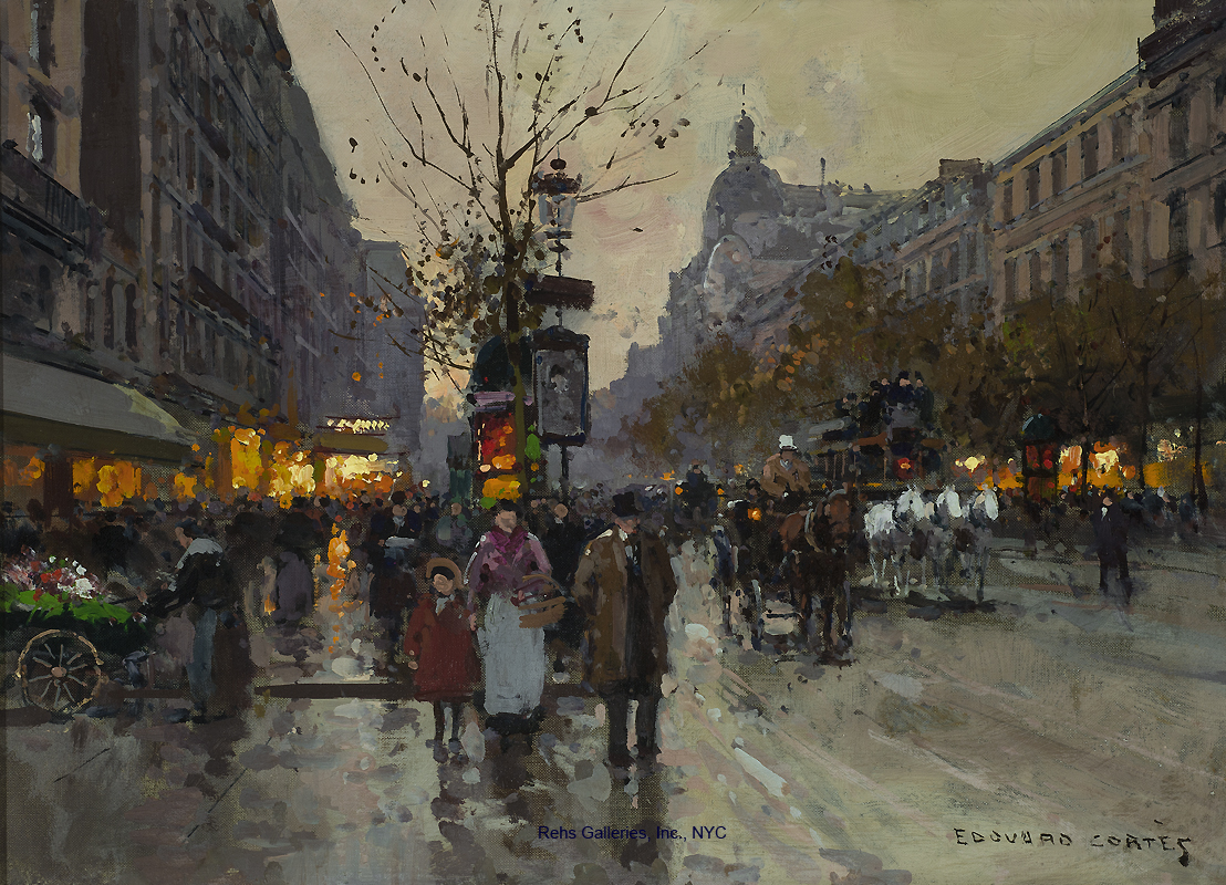 Ce n’est pas la rue de la Gaîté de Perec. Il y a longtemps que je n’habite plus Paris, sinon j’aurais sans doute tenté le coup des enveloppes, le jeu du découpage entre réel et imagination. Mais tout ce que j’ai aujourd’hui, c’est Google Earth et une mémoire vacillante. La mémoire, c’est pour ça que je m’appuie sur des photographies. Mais même avec des photographies, la mémoire reste capricieuse. J’essaie, on verra bien. Des bribes, des fragments, au fur et à mesure, dans l’ordre où ça me revient. La ville commence sous les pneus de la voiture qui roule sur les pavés. À l’époque, on ne disait pas encore "véhicule". Les pavés résonnent sous les roues : tougoudougoudou, tougoudougoudou. On tourne, on va tout droit, encore et encore. Tougoudougoudou. Puis on ralentit. Une voix dit : "On arrive." Une autre répond : "Merde, il n’y a encore pas de place." Alors, on se gare en double file pour décharger les valises. La rue Jobbé Duval est en pente. On entend le frein à main, suivi du bruit sourd d’une vitesse qu’on engage avant de couper le moteur. Pas longtemps. Il faut faire vite. Klaxon d’un camion, peut-être un de ces énormes camions poubelle. Une portière claque, le moteur redémarre. Une odeur d’essence flotte un instant avant d’être recouverte par celle de la ville. L’odeur de Paris. Indéfinissable, mais unique. Quelques arbres chétifs jalonnent maintenant la rue. Autrefois, il n’y en avait qu’un. Un seul, dont le tronc s’enracinait au centre d’une plaque de fonte ornée de motifs amusants, géométriques, vaguement floraux, peut-être inspirés des feuilles d’acacia. On en trouvait le long du canal, dans l’Allier. Une plaque circulaire en fonte, comme celles que l’on forgeait autrefois, peut-être à l’époque de l’Art nouveau, quand les fonderies n’étaient pas encore des salles de spectacle, des musées ou des cinémas. On ne pose plus ce genre de plaque ouvragée, cernée d’un fin liseré de pierre taillée. Pourtant, elle était là, sur un îlot discret, au beau milieu de la rue Jobbé Duval, qui commence rue des Morillons et finit rue Dombasle, à moins que l’on prenne la rue dans l’autre sens. Autrefois, ce petit arbre chétif était le seul. Pas de bancs pour s’asseoir. Aujourd’hui, ils ont planté d’autres arbres. Tout aussi chétifs. Et ils ont ajouté un banc. Qui vient s’asseoir ici ? En tout cas, c’est à cet endroit, là où la rue s’évase légèrement, qu’elle forme une sorte de place. Une place sans nom. Au 15 bis de la rue Jobbé Duval, une lourde porte se pousse après qu’on a pressé un petit bouton dépassant d’une plaque dorée. Un bruit long de grésillement accompagne l’ouverture. Mais la porte ne s’ouvre pas seule. Il faut la pousser. Elle est lourde. Tout en haut de l’immeuble habitent ceux qu’on vient voir. Pour les atteindre, il faut traverser un couloir bordé de miroirs. On se voit dans la glace, puis dans l’autre glace. Puis on pousse une seconde porte, vitrée, bien plus légère. Derrière, la loge des concierges, les Gassion. Monsieur et Madame Gassion. Sur leur porte, un rideau. Sur le rideau, une fausse cigale en plastique. Quand on toque pour dire bonjour, un bruit de cigale retentit, suivi du gazouillement d’un canari jaune dans une cage métallique. La cigale est fausse. Le canari, lui, est bien réel. Avant de monter les sept étages par l’escalier recouvert d’un tapis rouge sentant l’encaustique et le café, on peut emprunter l’ascenseur, coincé sous la volée de marches. À l’angle de la rue Jobbé Duval et de la rue des Morillons, il y a une boulangerie. Si l’on remonte, elle est à gauche. Si l’on descend, elle est à droite. Sa devanture n’a presque pas changé. Certaines choses changent dans la rue Jobbé Duval, d’autres non. Le marchand de couleurs a disparu, remplacé par un salon de beauté. Mais la boulangerie est toujours là. Ses propriétaires ont changé. La disposition des étals à l’intérieur aussi. Avant, sur la gauche en entrant, un présentoir rappelant celui des parapluies accueillait des "surprises" : des petits paquets remplis de papier journal chiffonné et, au centre, un jouet en plastique. Il y avait aussi, si je me souviens bien, des bonbons. Illustration : Edouard Léon Cortès, Boulevard des Italiens sous la pluie|couper{180}