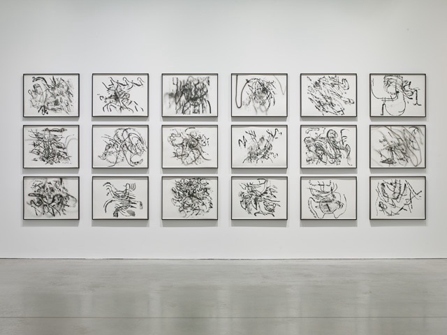 Nouvel accrochage, à la médiathèque de S. Arrivé quelques minutes à l’avance, X. arrive presque en même temps. Puis A. surgit du coin de la rue, on s’embrasse. Toujours cet air faussement austère. Elle s’excuse, ils ont commandé de nouvelles cimaises mais pas encore reçues. Nous refaisons encore une fois le tour du propriétaire. La grande salle au rez de chaussée sera pour X. Celle aux murs rouges pour G. et je me contenterai d’une antichambre au haut de l’escalier. Tiens ils n’ont toujours par réparé ce problème de lumière. Je prends cela comme ça vient, mes toiles sont faites pour être exposées sans tenir compte des éclairages. Elles luisent d’une manière interne. Bien sûr. L’idée ne serait pas d’écrire une chronique par le menu, la description, la relation des faits et gestes. Mais plutôt de ne recueillir que quelques éléments suffisamment épars, ceux-là mêmes qui comptent vraiment, auxquels dans l’action on ne prête que peu d’attention, celle-ci étant mobilisée par je ne sais quel essentiel. La chaleur intense vers 17h me fait traverser la rue pour rejoindre l’ombre astringente d’un catalpa. M. la compagne de G. fume. Elle sort souvent pour fumer. j’hume l’odeur de la cigarette en m’interrogeant sur son effet. Rien, c’est juste une odeur de cigarette. J’observe ma maladresse à verser le café avec ce genre de bol habituel dans de gros gobelets de carton. On ne trouve pas le sucre. Nous nous asseyons pour regarder les toiles que X a déposées au pied des murs, l’aidons, l’encourageons, puis vaquons à notre propre installation. Moment de silence où chacun se retrouve seul avec ses œuvres. A quoi je pense, à pas grand chose. Que l’ensemble tienne la route. S. et moi avons tout préparé, les listes, les bio, les cartels, j’ouvre la pochette jaune dans laquelle tout est remisé, j’ai apporté la moitié d’une plaquette de pâte collante, amplement suffisant pour une vingtaine de toiles. Les petits carré de Patafix semblent pouvoir se scinder à l’infini. De retour à la maison S. n’est pas encore revenue de chez sa mère. Je dépose un doliprane dans un verre pour calmer la rage de dent qui revient lancinante. De retour devant mon écran je m’aperçois que la connexion réseau est tombée, que je n’ai plus d’accès à internet. Je farfouille sur mon iPhone dans les forum Ubuntu pour retrouver les commandes du terminal me permettant de rétablir la liaison avec le monde. Je m’arrète pensif en réfléchissant à ce que je nomme liaison avec le monde. A noter, la splendeur du grand tilleul vu à la fenêtre de la salle de cours. Des vers tendres et des verts profonds, une spirale, un vortex dans quoi j’aurais volontiers disparu corps et âme, vers 19 heures. A noter aussi, le lendemain un arbre encore plus majestueux sur le parking S. Même émotion vivre, sensation d’être attiré par l’imposante présence d’un être. C’est un tilleul aussi après avoir repris mes esprits. Ce sont des sensations très anciennes qui remontent à la surface, renversant toute notion d’âge, de distance, des chocs émotionnels pour ne pas dire esthétiques, esthétique étant, je crois, un mot banni, avec tout le pédantesque qui l’accompagne généralement. Et il n’est pas rare que, ne désirant pas l’être et le refusant plus ou moins énergiquement, on soit victime d’un effet de bord de la pédanterie même.|couper{180}