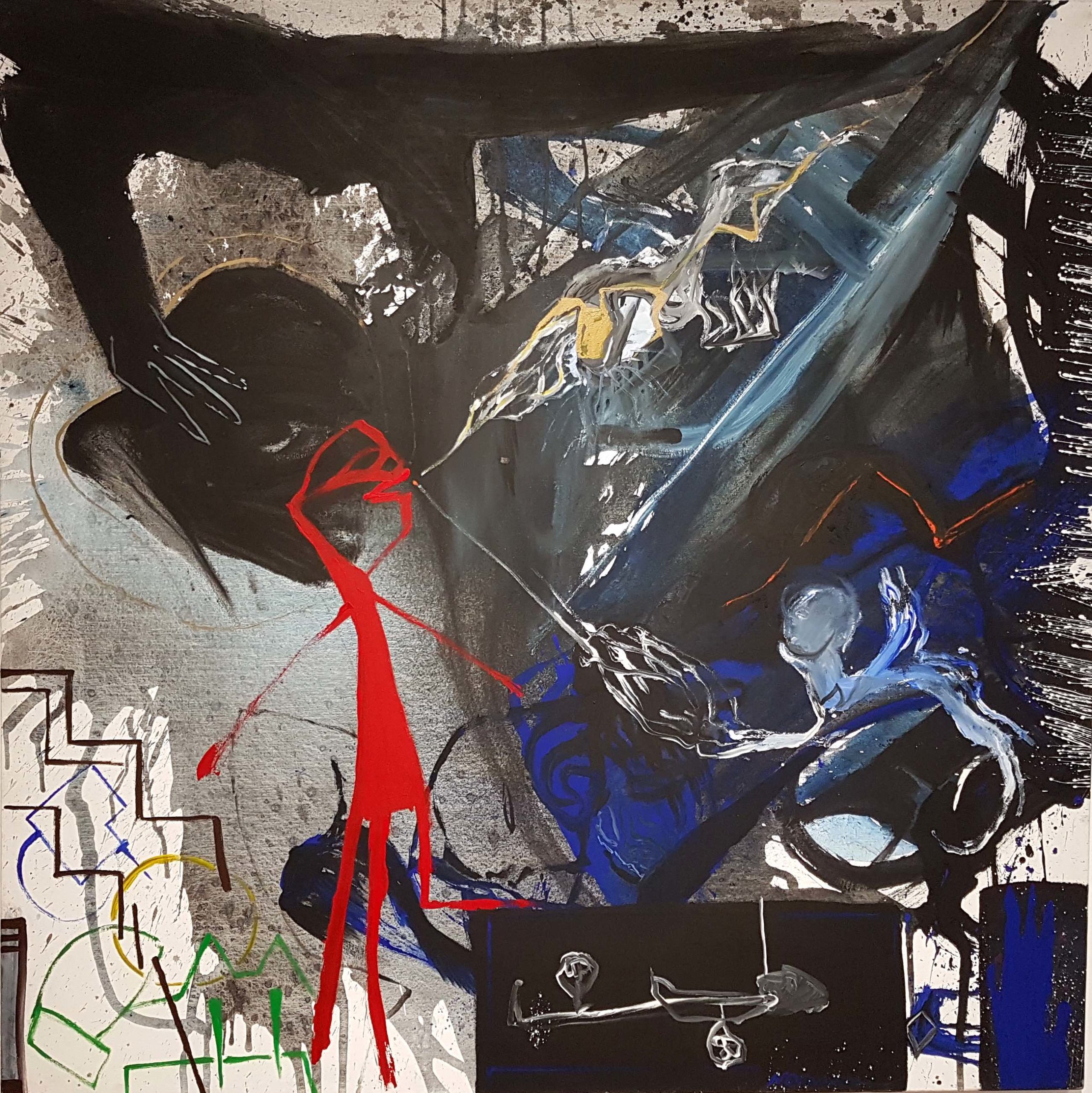Peinture : Valère Novarina Valère Novarina, né en 1947 à Genève et ayant grandi sur les rives du Léman à Thonon, est un créateur protéiforme : écrivain, metteur en scène, peintre et dessinateur. Son œuvre, profondément enracinée dans une quête ontologique et artistique, traverse les frontières entre les médiums. Théâtre, peinture, dessin et écriture dialoguent, s’entrelacent, et se nourrissent mutuellement pour exprimer une recherche commune : celle de l’essence de l’humain. Chez Novarina, le langage n’est pas un outil descriptif mais une matière vivante, organique, presque charnelle. Il le travaille comme un sculpteur polit la pierre, explorant son poids, sa sonorité, son mouvement. Les mots s’accumulent, éclatent, se combinent, ouvrant des dimensions nouvelles. Dans L’Origine rouge ou Le Drame de la vie, cette énergie verbale devient presque une force brute : les mots semblent dotés d’une vie propre, s’agitant et se transformant comme des corps en mouvement. Cette approche du langage dépasse le monde matériel. Elle s’ancre dans une quête métaphysique : Novarina interroge ce qui échappe – l’invisible, le sacré, l’ineffable. Pour lui, le théâtre est un lieu de convocation des forces immenses, un espace sacré où l’on tente de toucher à l’essence de l’être. Dans Le Babil des classes dangereuses, par exemple, le personnage de l’auteur devient presque un médium, convoquant des figures humaines et divines dans une cérémonie où chaque mot est une incantation. Dans toutes ses créations, qu’il s’agisse de théâtre, de dessin ou de peinture, Valère Novarina place la figure humaine au centre, mais dans un dépouillement extrême. Il élimine tout contexte, tout lieu, tout objet, et même tout détail psychologique. Ses personnages ne sont pas des entités réalistes mais des fragments abstraits, des voix, des ombres. Dans L’Acte inconnu, ces figures portent des noms improbables – Maître Souvenir-Buvard, Petit Geste-du-Public, Nez Rentrant – qui abolissent d’emblée toute illusion narrative ou psychologique. Ce dépouillement permet à Novarina de remonter aux racines de l’humanité. Il cherche non pas à raconter une histoire, mais à explorer ce qui constitue l’être dans sa dimension la plus essentielle. Il écrit, dessine, peint des corps en mouvement, traversés d’une énergie qui dépasse leur individualité. À partir des années 1980, Valère Novarina étend son travail au dessin et à la peinture, qui deviennent des moyens complémentaires d’explorer son univers. Ses personnages, déjà vivants dans ses textes, réclament une autre forme de chair, une existence visuelle. Dans Le Drame de la vie (1986), il réalise 2587 dessins représentant les personnages de la pièce. Dans ces dessins, le nom de chaque personnage précède sa forme, comme si le mot était la matrice de l’image. La peinture, elle, apporte une énergie différente. Rapidité, geste, spontanéité : Novarina décrit la peinture comme un acte urgent, presque instinctif. « Par la peinture, j’ai réappris peu à peu des choses que j’avais oubliées à force d’écrire, j’ai retrouvé le geste, le mouvement, la joie de faire apparaître toutes choses très vite », confie-t-il. Cette urgence se retrouve dans des performances telles que 24h de dessin à la galerie L’Ollave à Lyon, où il réalise 1021 dessins en une journée, ou Générique performance à Dijon, où il dessine les 2587 personnages de Le Drame de la vie en deux jours. Dans ses tableaux, les gestes amples et fiévreux de la brosse traduisent une intensité presque rituelle. Comme dans ses textes, la vie – mouvement, flux, énergie – traverse ses œuvres, rendant leur lecture viscérale. Sur scène, Novarina fait exploser les mots. Son théâtre est un lieu de vie brute, de flux continu, où la langue est affranchie de son rôle descriptif pour devenir une vibration pure. Dans L’Origine rouge, les mots ne sont pas faits pour être compris mais ressentis, comme une musique primitive, une incantation. Les comédiens, sous sa direction, incarnent cette énergie. Ils ne jouent pas des personnages, mais deviennent des vecteurs du langage, des corps traversés par le souffle des mots. Dans cet univers, le spectateur est emporté par une cadence hypnotique, où chaque mot résonne comme une pulsation. Valère Novarina me fascine par son ambition démesurée : il ne se contente pas d’écrire ou de peindre, il cherche à révéler ce qui nous constitue dans notre essence la plus profonde. Par son travail, il nous invite à dépasser les conventions narratives et esthétiques, à explorer le langage, le corps, le geste comme des forces vitales. Son œuvre, traversée par une énergie brute, nous rappelle que l’art – qu’il s’agisse de théâtre, de peinture ou de dessin – est avant tout une quête, un acte de vie. Avec Novarina, on apprend que créer, c’est convoquer, faire surgir, donner chair à l’invisible. Et c’est cette intensité, cette radicalité, qui fait de son travail une source d’inspiration inépuisable.|couper{180}