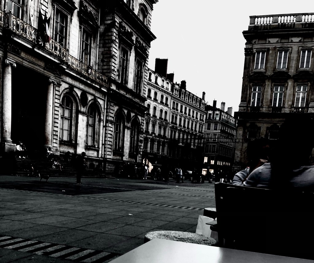 Lyon place des Terreaux Tranquille. Fin d’une journée de travail. Premières lueurs qui s’allument de l’autre côté de la place. Leonidas. JeanLouis David. Voisin. Leffe. Une autre bière peut-être. Quatre euros soixante quinze cents . Chasse la sensation désagréable. Qu’est-ce que je fiche là. Je ne sais pas. Aucune idée. Sensation paisible qui revient. Il faut tout de même l’effort d’un mantra. Le répéter en boucle, méthode Coué ou hindou.|couper{180}