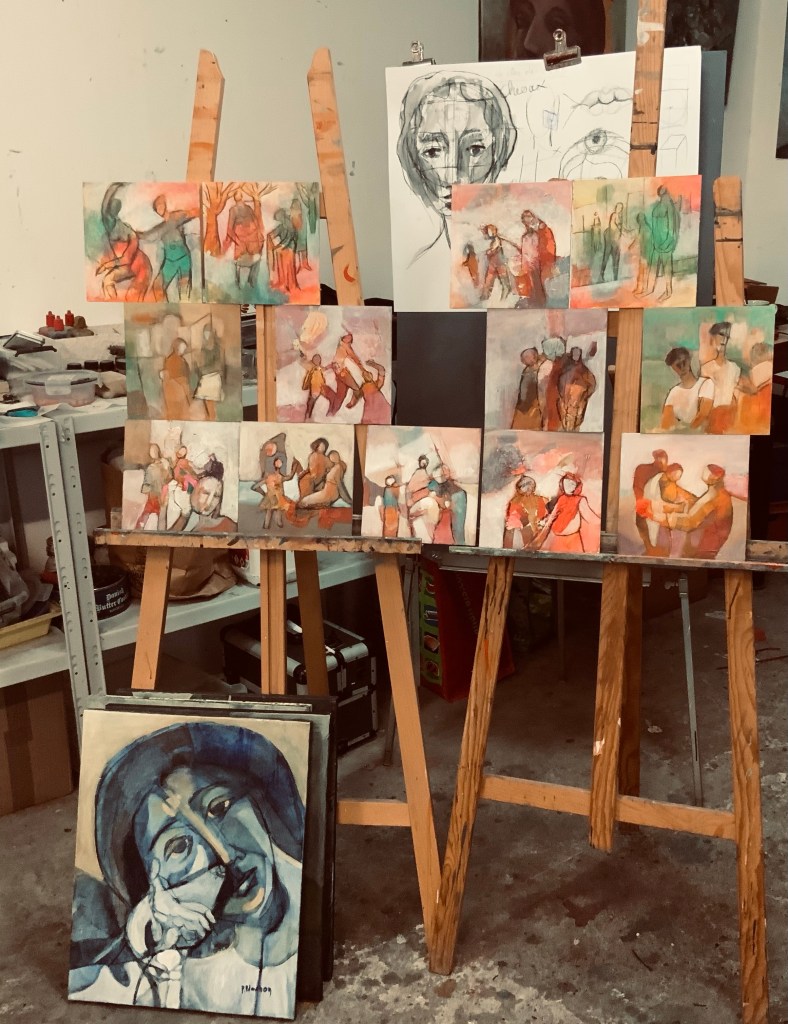 Dernières touches, les petits formats pour l’exposition du 111 des arts à Lyon.|couper{180}