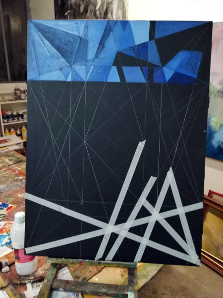 illustration Etape de la construction d’un tableau (épopée de Gilgamesh) Huile sur toile format 80×65 cm 2019