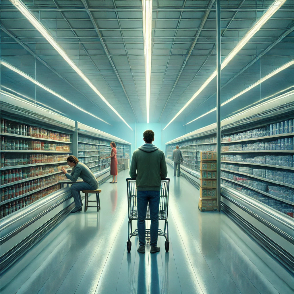 Mes dents me lancent toujours, mais je tiens bon. J’ai même dissous un Doliprane dans un verre d’eau, bu en cachette, histoire d’anticiper ces longues heures hors de la maison. S. trouve inconcevable que je n’aille pas chez le dentiste. Elle trouverait encore plus dingue la moindre excuse bancale que je pourrais opposer à son verdict. Ça finirait encore en brouille, et les courses ne sont déjà pas une sinécure. Alors j’avance, stoïque, poussant le caddie à travers les allées.