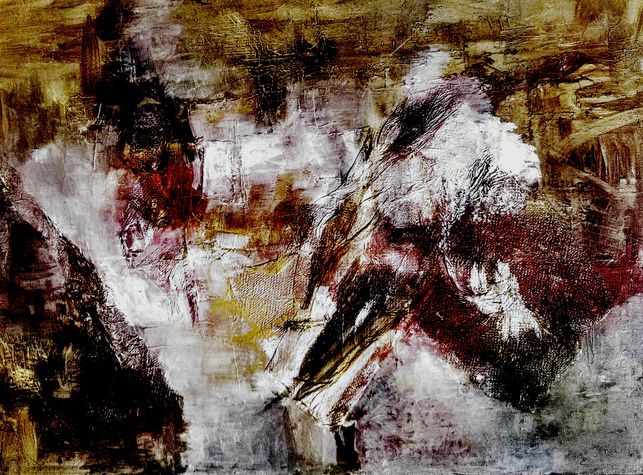 Tu as tenu 4 rounds et tu t’en es pris un bon paquet dans le buffet. La petite cloche vient de sonner et tu retournes dans ton coin la bave au coin des lèvres, pas beaucoup de temps pour reprendre des forces et te reforger une stratégie. L’autre en face te parait moins amoché que toi, c’est pas toi qui a l’avantage sur ce coup là … Qu’est ce qui se passe dans ta tête maintenant ? ? c’est là que tout se joue ne l’oublie pas ! 42 toiles en 3 mois , 6 expos en parallèle, tu as de la peinture plein.. les doigts. Assis-toi et réfléchis. A quel round t’en es ? combien tu peux encore tenir ? et en face il n’y a pas d’adversaire ce coup là , juste l’adversité. Septembre arrive avec sa cohorte de créances à payer. La reprise des cours, les kilomètres à avaler, le contrôle technique à faire, serrer les dents, les fesses, les poings pour que tout passe. Faudra que tu regardes la définition de subir et de supporter dans le dico. Mais à quel round t’es es ? Pour tenir tu as utilisé l’espoir, le rêve ,la rage, le désir, et bon sang même l’amour y est passé. Tu ne te prends pas pour un champion pourtant, tu voudrais juste boxer ou peindre dans la bonne catégorie. Ton moteur c’est quoi , pourquoi tu ne laisses pas tomber finalement ? Tu as vendu 10 tableaux et tu n’es pas content qu’est ce qu’il te faut encore ? Devenir imprévisible surprendre l’adversaire. Etre comme ‘océan, ciel et vent… Tais toi ! tu es bien plus grand que tes pensées et tes mots. Boxe, peins, mais “tais toi je t’en prie” comme dirait Raymond Carver|couper{180}