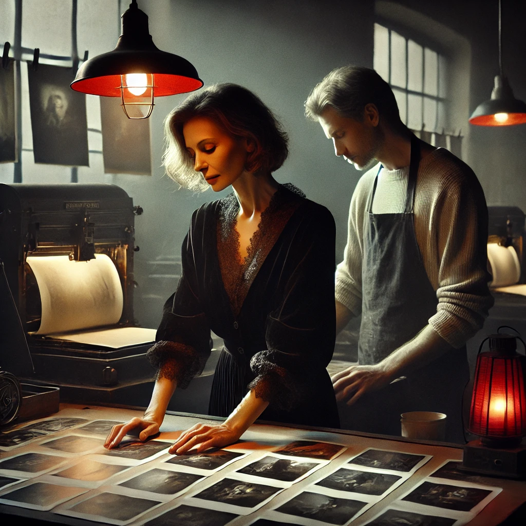 Les jours suivants, il travailla seul, dans son laboratoire improvisé, à quelques rues de là. Elle n’osa pas l’accompagner. Pourtant, elle ne pouvait s’empêcher de songer à lui, à ses mains virevoltant dans la lumière de l’agrandisseur. Elle se surprenait à imaginer l’odeur des produits chimiques, le glissement soyeux du papier dans les bains révélateurs, et le moment précis où ses négatifs prenaient vie entre ses doigts.