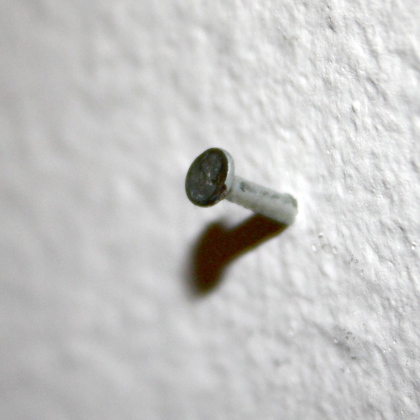 Il y a une tache. Une tache qui interrompt cette neutralité . Elle n’est pas qu’une tache : elle attire l’oeil. Elle devient un événement dans ce vide uniforme. De la même manière, il y a un clou. Planté dans le mur, il n’est pas qu’un clou. Il transforme l’espace. Il suggère l’idée d’un usage, d’un manque, d’un objet absent qu’il aurait pu soutenir. Ce clou, ce n’est pas juste du métal dans la surface ; c’est un point d’accroche, une possibilité de pivot autour duquel le mur cesse d’être simplement un mur.