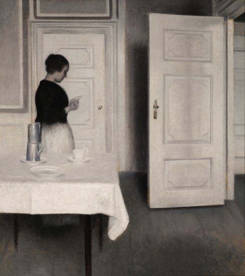 Je ne me sens pas tranquille. La gouttière crisse sous les rafales de vent. Une branche d’olivier en pot la frotte, à intervalles irréguliers. Ce n’est pas grand-chose, un simple bruit métallique, mais il me dérange. Et puis, il y a la musique. Une musique que je n’ai pas choisie, qui s’infiltre dans la cour, qui s’impose. Les voisins. Un couple, la trentaine, un enfant. Le bébé vagit, hurle, rit. Eux aussi crient, rient, s’engueulent. Un flot de sons qui déferle. Impossible d’y échapper. Impossible d’être tranquille. Je ferme les yeux. Je veux m’y habituer, je tente de reléguer ce vacarme au second plan, de ne plus y prêter attention. Mais l’effort est épuisant. Ce bruit exige que je l’entende. La chaleur écrase la cour. L’air est lourd, stagnant. Une torpeur qui n’endort pas mais qui agace, qui s’accroche à la peau. Le vent revient, fait claquer une persienne, remue la branche d’olivier. La gouttière grince. Un petit bruit, ridicule à côté de la musique. Pourtant, il m’irrite autant. Et puis, soudain, la musique monte d’un cran. Un coup de poing sonore. Du rap. Des basses qui cognent. Une voix saccadée, mâchée, agressive. Je ne distingue pas les paroles, mais je ressens leur violence. Une musique qui attaque, qui cherche une cible. Moi. Je suis ce quelqu’un à qui elle s’adresse, celui qu’elle veut déranger. La colère monte. Une colère bête, incontrôlable. Ils n’en ont rien à faire des autres. Ils savent qu’ils dérangent, et ils s’en foutent. Le voisin est un roi qui tourne son bouton de volume comme on donne un ordre. Un tyran sonore. Je serre les poings. Si je monte et que je frappe à leur porte ? Si je leur hurle qu’ils sont insupportables ? Si je monte le volume à mon tour ? Non. Rien. Je ne peux rien. Je suis là, assis, impuissant. Et puis… Le silence. La fenêtre des voisins s’est refermée, la musique s’est tue. Plus un bruit. Même le bébé s’est calmé. Alors, je devrais être soulagé, non ? Mais non. Mon oreille cherche. Je scrute le silence, à l’affût du moindre son. Là, au loin, les voitures sur la nationale. Klaxons, accélérations. Avant, je ne les entendais pas. Maintenant, ils me sautent aux oreilles. Peut-être que ce ne sont pas les bruits qui m’empêchent d’être tranquille. Peut-être que c’est moi. Je m’adosse au mur. Je ferme les yeux. Un coup de vent fait tinter doucement le carillon suspendu à l’olivier. Un son léger, apaisant. La gouttière grince. Je rouvre les yeux. Et j’attends. Illustration : Vilhelm Hammershøi , Ida lisant une lettre, 1916|couper{180}